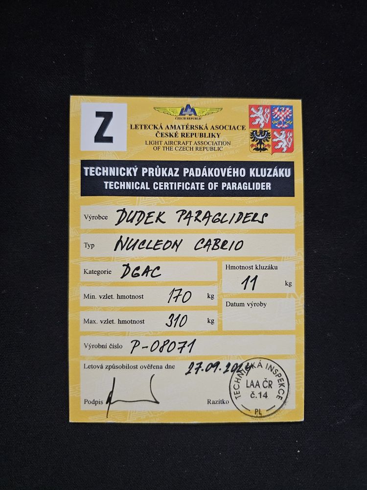 Kategorie: Křídla (padáky) / DAGC (na motor)