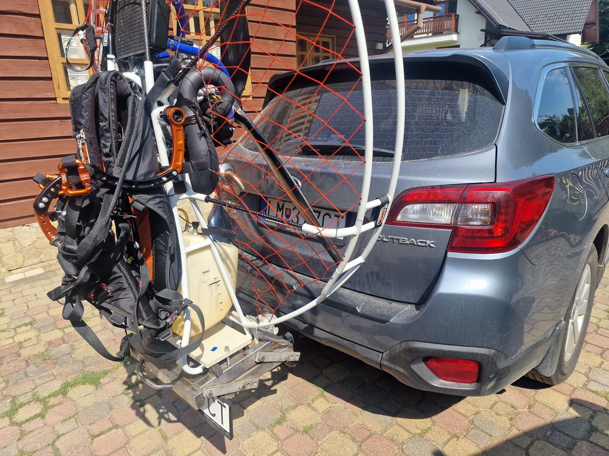 Vrtula trojlistová 130cm E-Props + 130cm drevená, pridávam nerezový nosič na ťažné zariadenie (jednoducha preprava v zloženom stave, jednoduche nakladanie krosny na chrbát.)