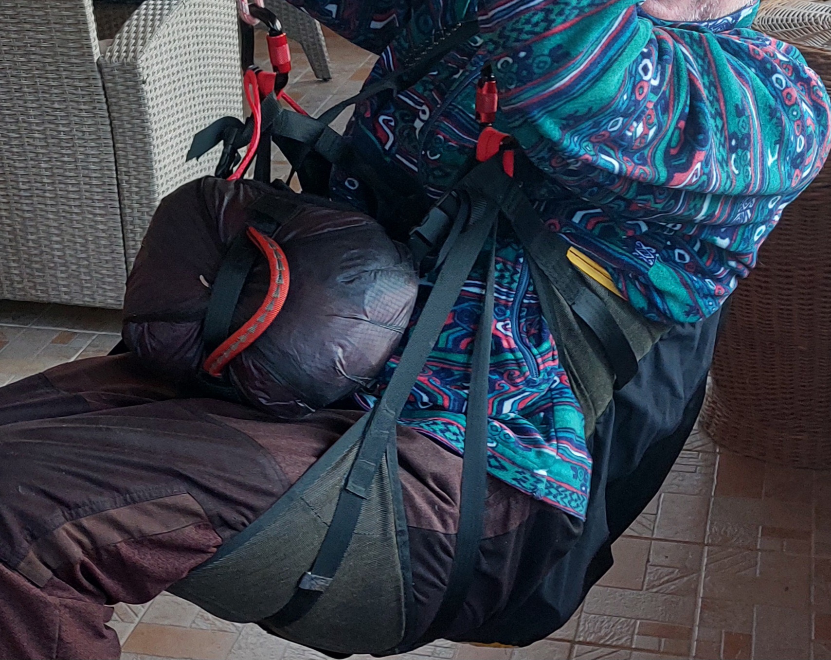 reverzní horská sedačka/batoh, oddělené nohy, bez pevné desky v sedáku, váha 1,15 kg