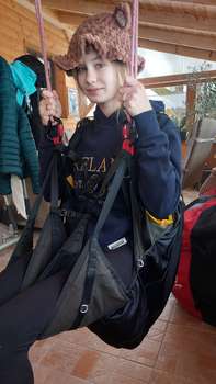 Prodám: Sedačka Pro začínající SKY CROX Použité Chránič nemá Karabiny Odlehčená S batohem Záložák na břiše
