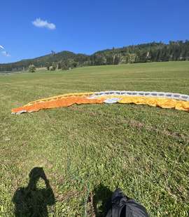 Prodám padák. V březnu mu skončila technická, a protože jsem přešel na jiné křídlo, už jsem ji neprodlužoval. Jedná se o školní křídlo, ale spadá do kategorie B. Na začátek by ještě někomu mohlo dobře posloužit. Kompletní historie padáku a hmotnost 4,5 kg.
