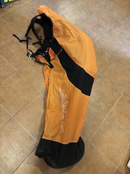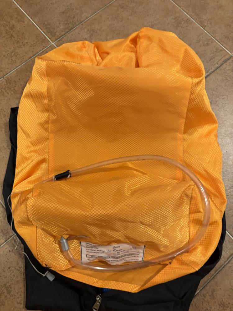 Leichter Sitz nach professioneller Reparatur des Kokons. Der Sitz wird mit einem originalen Schaumstoffschutz und einem aufblasbaren Schutz für noch kleinere Abmessungen geliefert. Lesezeichen im Tresen. Leichter Rucksack.