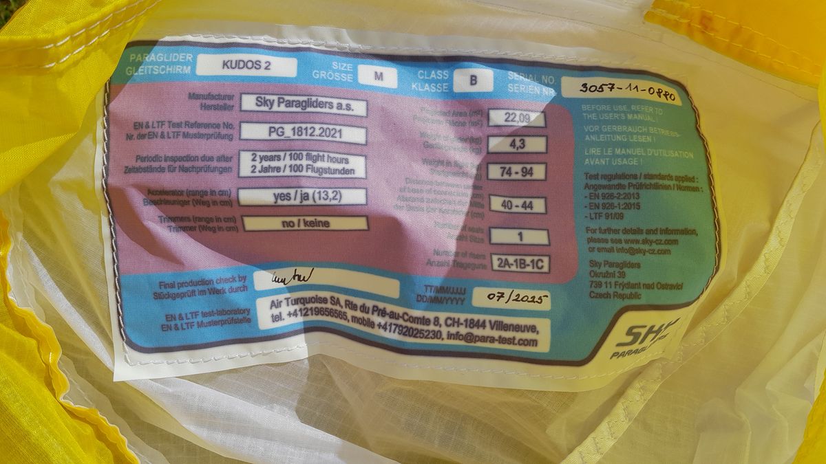 Ich verkaufe einen SKY Kudos 2 Demoflügel, Größe M, Farbe LILY. Hergestellt im Juli 2025.