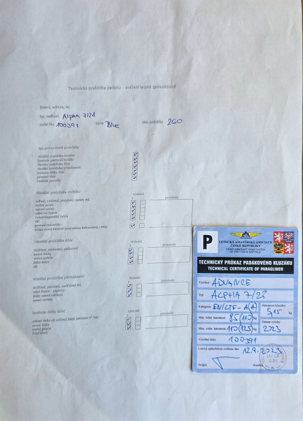 SELL: Wing EN A Advance Alpha 7 28 85-110kg No water TC valid TC fresh No SIVs No trees