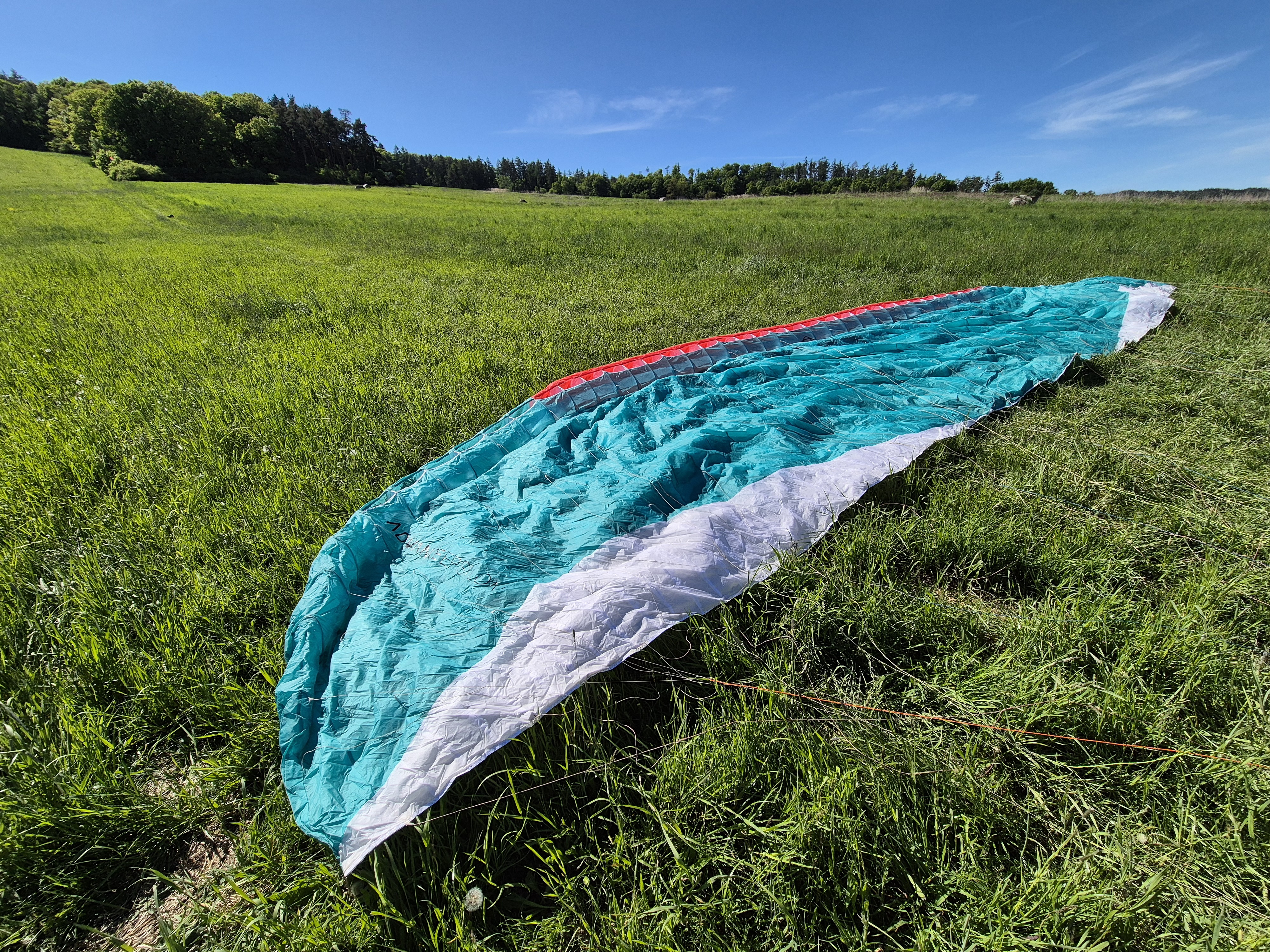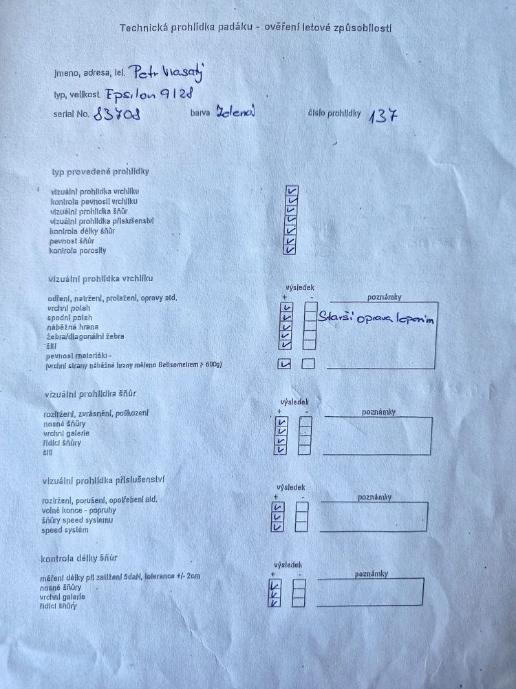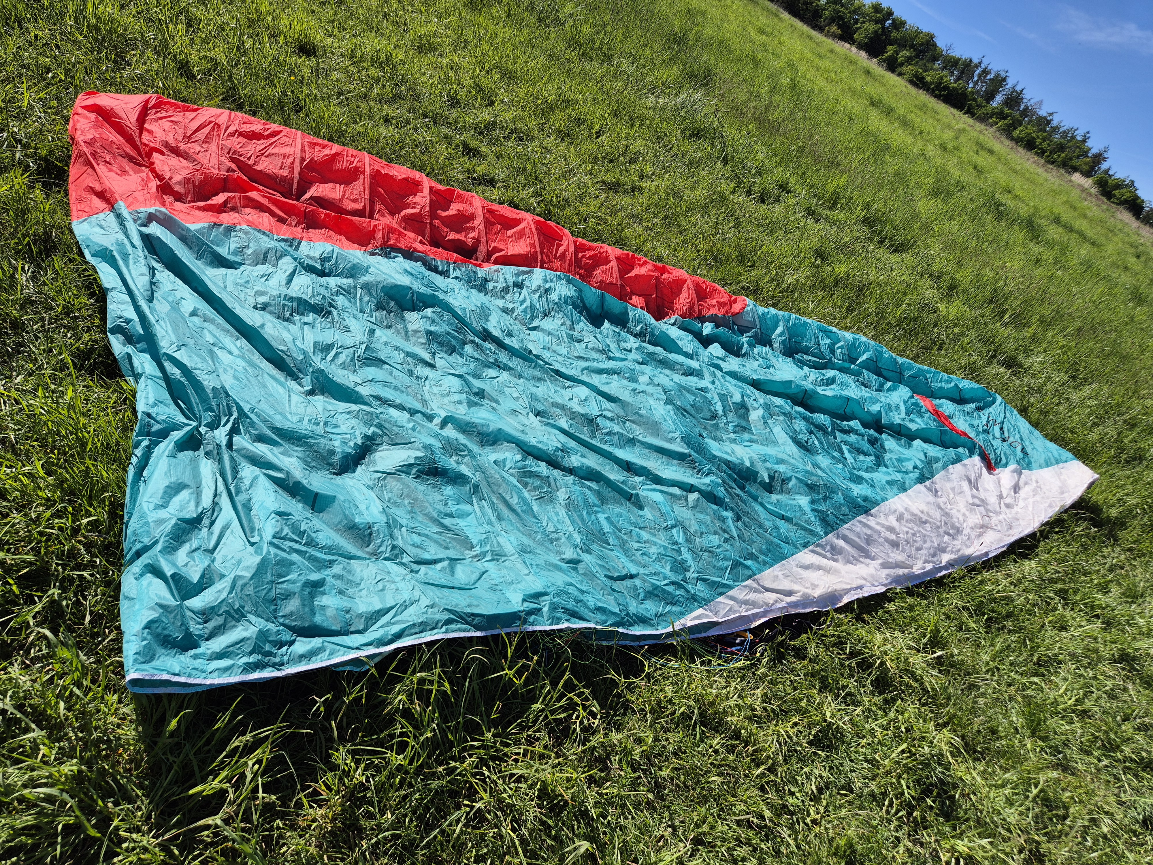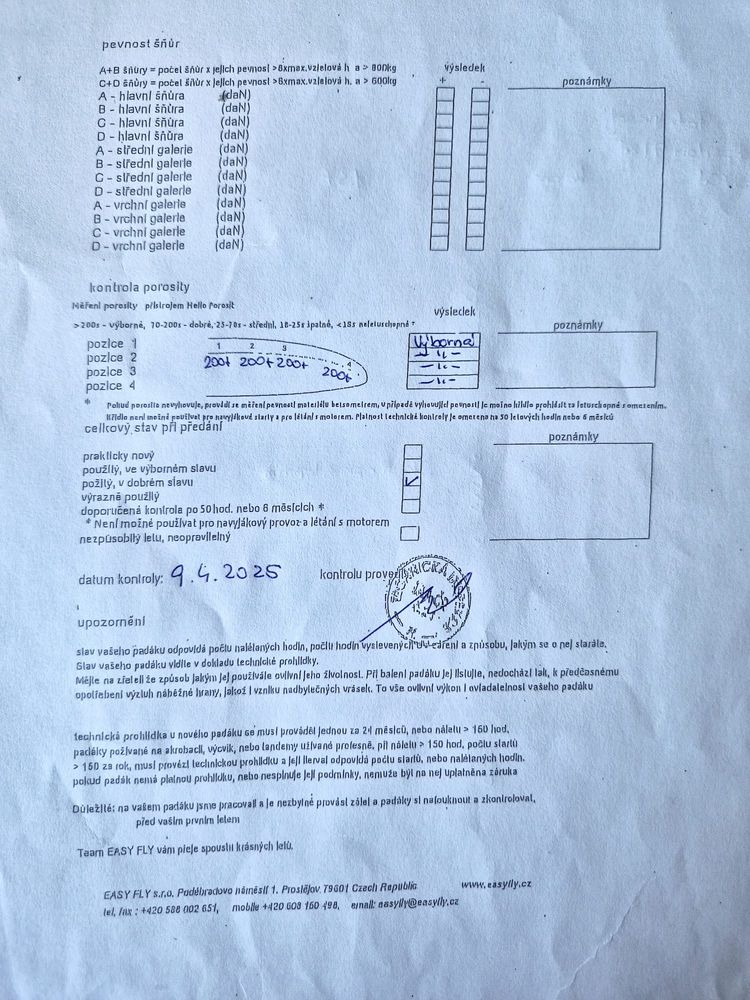 Wing in excellent condition (technical conclusion dated 9.4.2025). Porosity 200+ (EasyFly does not measure further) Hole glued with skytex on the lug (approx. 5x5cm, see photo) after tearing from a thistle on Raná. Flight time max 110 hours. From my point of view, a decent wing that solved everything for me "by itself". The main reason for selling is that I am very light on it and I need a smaller one. I am also offering a Sky flip cover that fits it nicely. Does the price not suit you? Contact me... Full quality photo on google drive: https://drive.google.com/drive/folders/1GY-5_mMZ9c91rUMbhQoEEem_k_FfSQZY?usp=sharing You can take a look at the video in flight (at the beginning and from 8:30 it is clearly visible): https://youtu.be/Qxg8veLVlV0