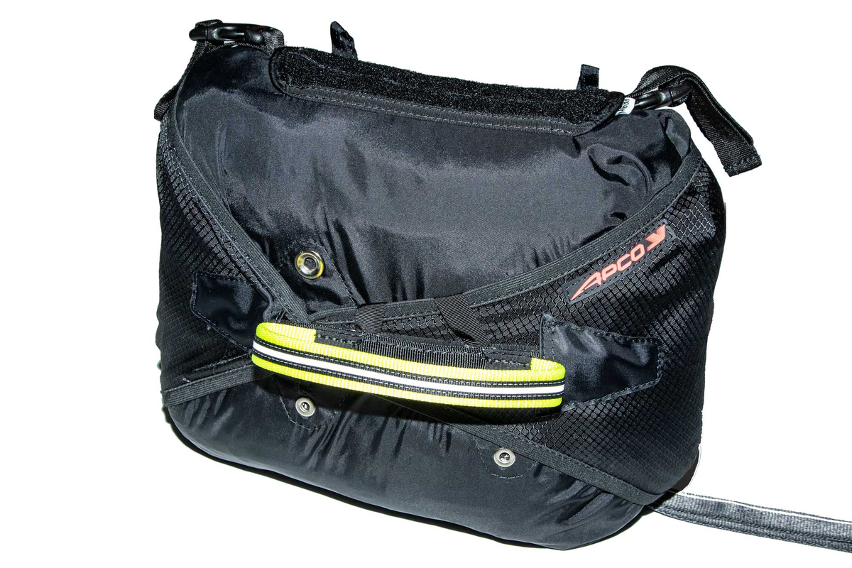 I am selling a brand new, never used, spare parachute container from Apco Aviation. Size L suitable for larger reserves up to a size of 6500 cm3. Universal, it can be mounted on the side or in front, where it also serves as a counter - there is a Velcro fastener on the top. Very suitable also for paramotor.