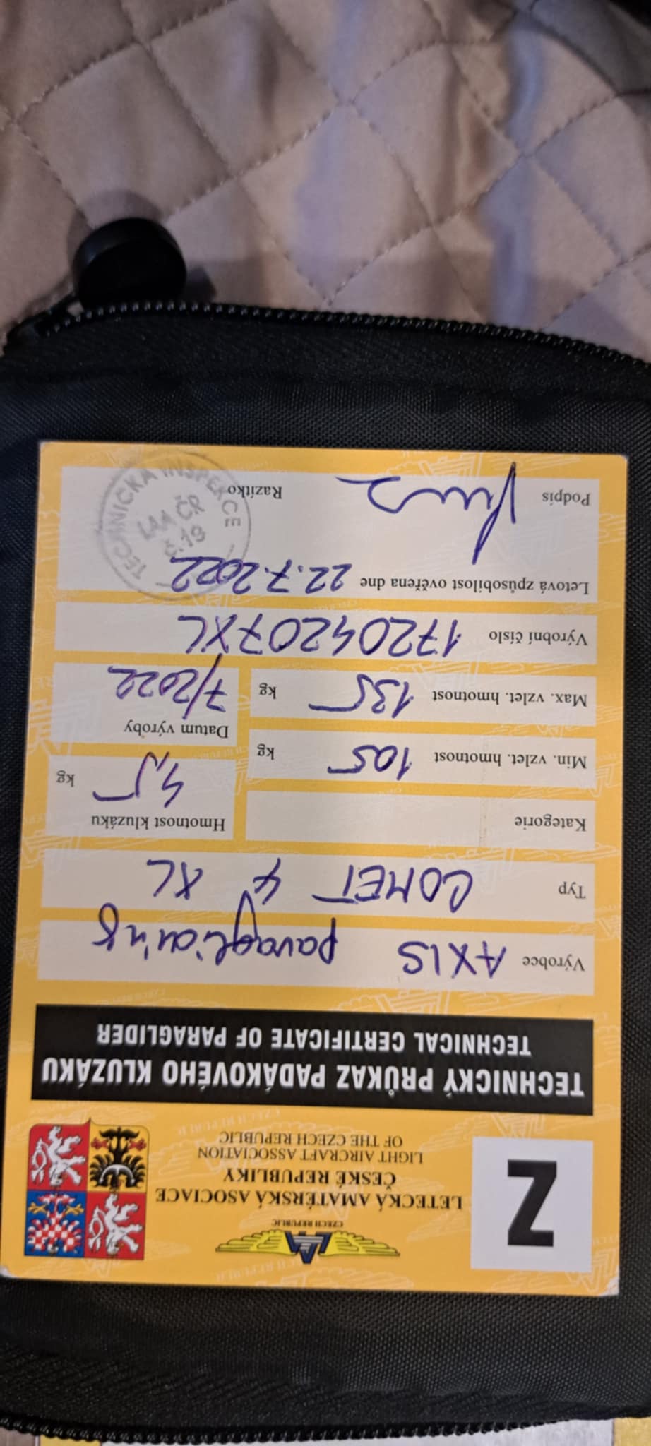 Hi, I'm selling a complete set of equipment. Axis Cometa parachute, size XL, year of manufacture 2022, which flies beautifully, great for recreational and advanced pilots, Haven XL cocoon seat with a reserve parachute that is repacked and checked every year, Lubin helmet, size L, 2x radio plus vario. Leaflet bag plus Axis backpack. The whole set is in excellent condition, cared for, without accidents. You sit down and fly everything in one. You can see it, try it, touch it in person. I can send more photos if necessary.
