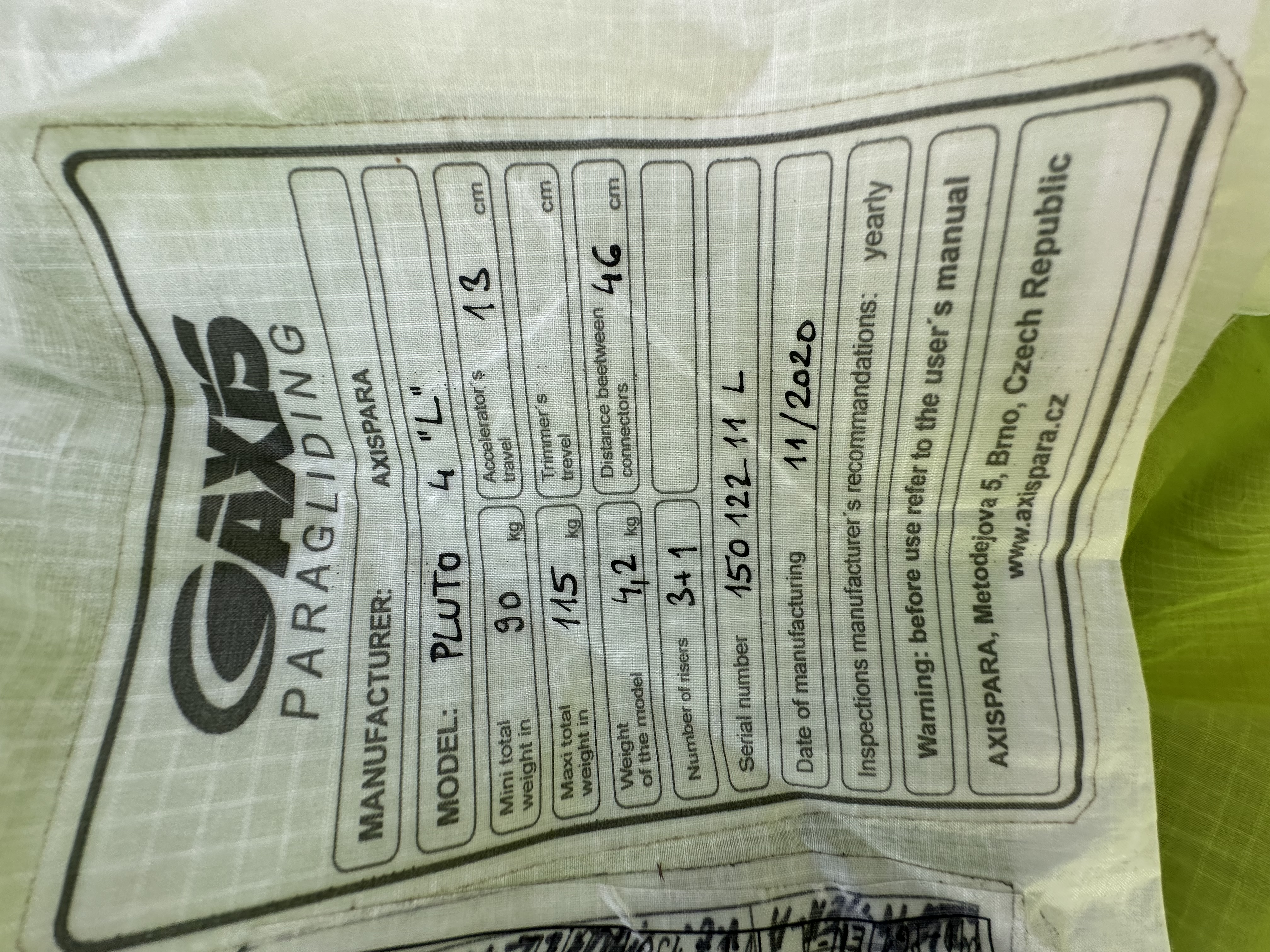 I will sell a paragliding wing Axis Pluto 4 in size L 90-115kg. Wing weight 4.2 kg, category EN-A. Wing suitable even after the course, very good glide and passive safety. I'll put a leaf bag with the wing for free.