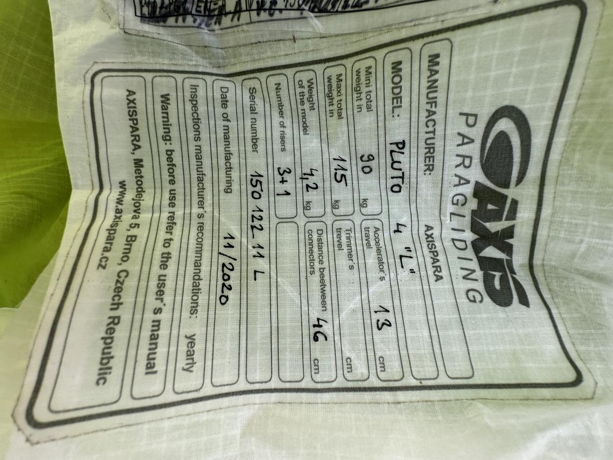 SELL: Wing EN A AXIS Pluto 4 L 95-115kg No trees Concertinas No water Small repairs With listing bag TC valid