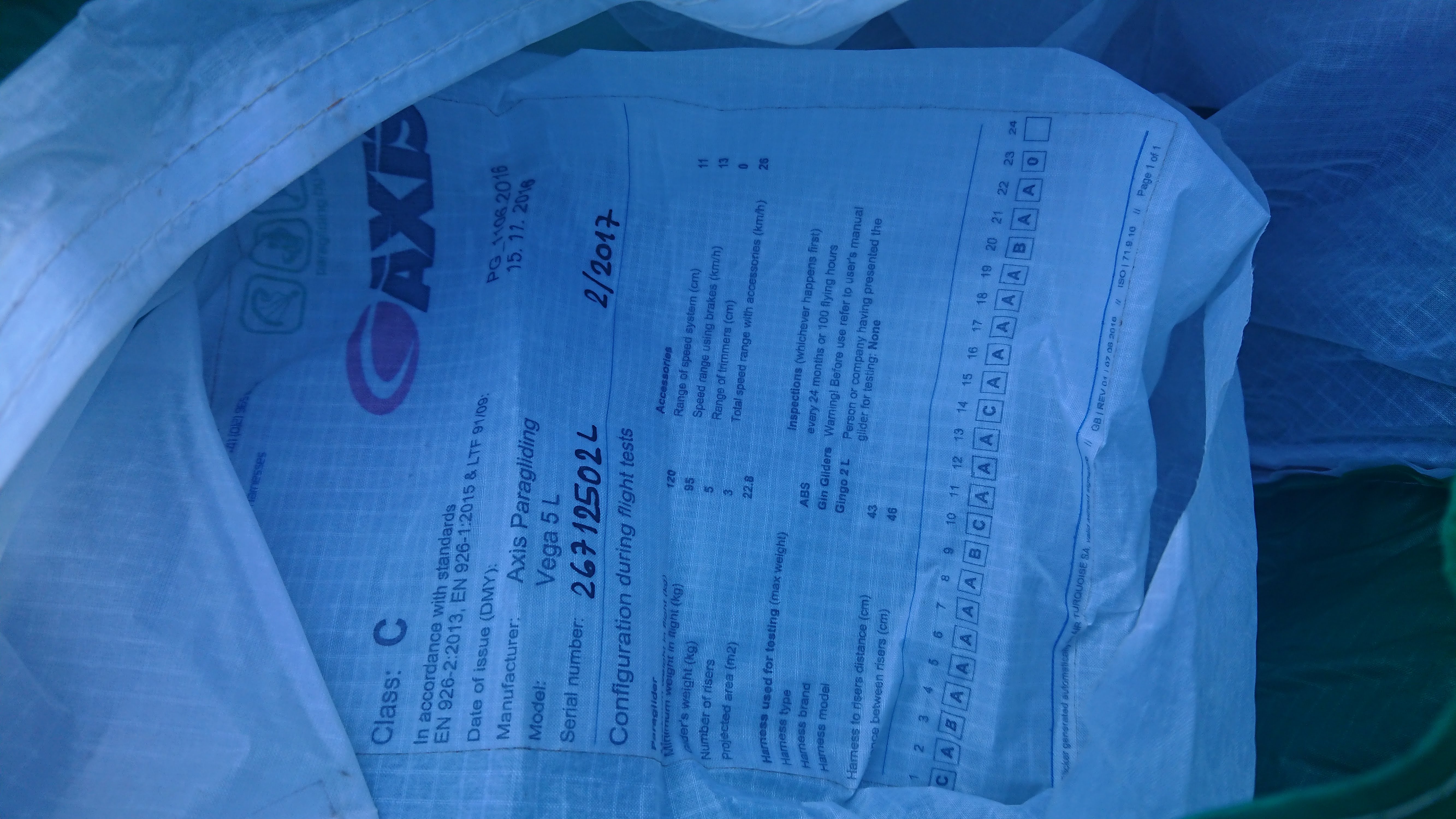 SELL: Wing EN C AXIS Vega 5 L 95-120kg No water No flying on the sand No TC Small repairs