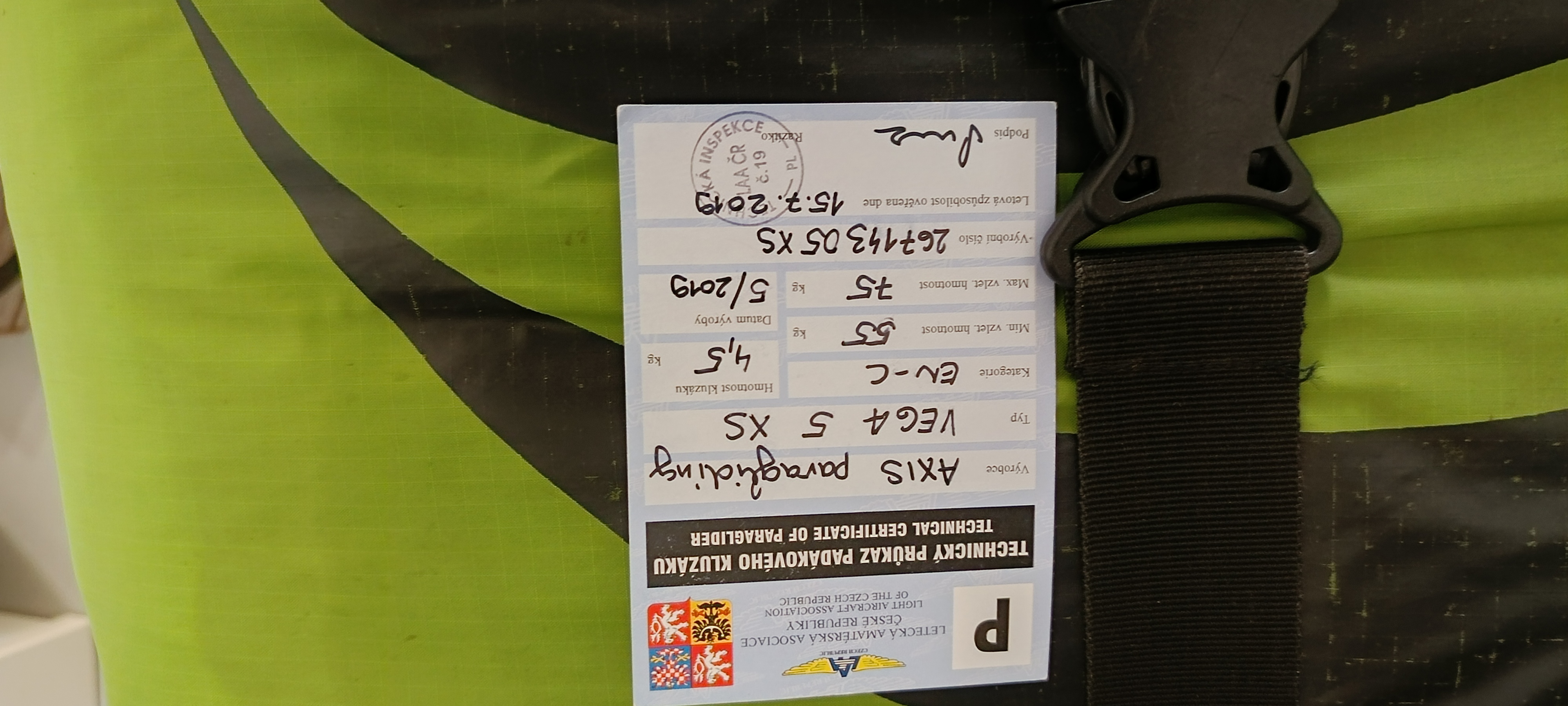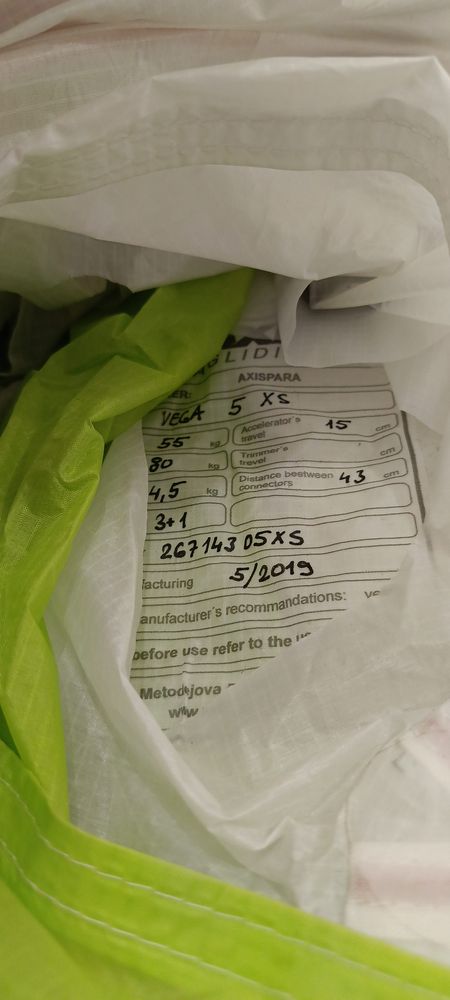I am selling my Vega 5 in size XS. Take-off weight 55 - 75(80)kg. Flight time approx. 150h. Valid technical certificate. One stabilizer replaced at the last technical inspection (the original one had a damaged braid). No SIV, water or sand. Can be seen and tested in the Beskydy Mountains (Frýdek-Místek).