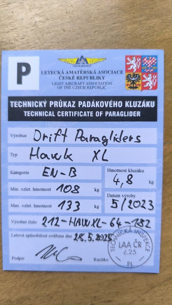 SELL: Wing EN B Drift Hawk XL 108-130kg No trees Concertinas No water No SIVs With listing bag TC valid TC fres