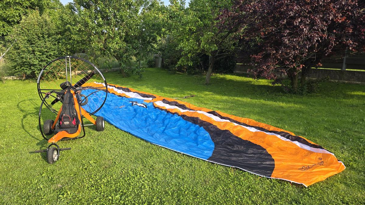 I am selling complete equipment for motor paragliding, I am quitting due to lack of time. I am selling the Trike Spin 180 EVO tricycle together with the MAC CHARGER 2 - 28 parachute, rarely flown, undamaged, like new, year 2022. The tricycle with the parachute is also suitable for a beginner, the ideal pilot weight is up to 95kg. The tricycle also includes a reserve parachute, spare composite propeller and other accessories. Valid technical inspection, paid statutory insurance for the year 2025, ready to fly. The price of the set is 130,000 CZK