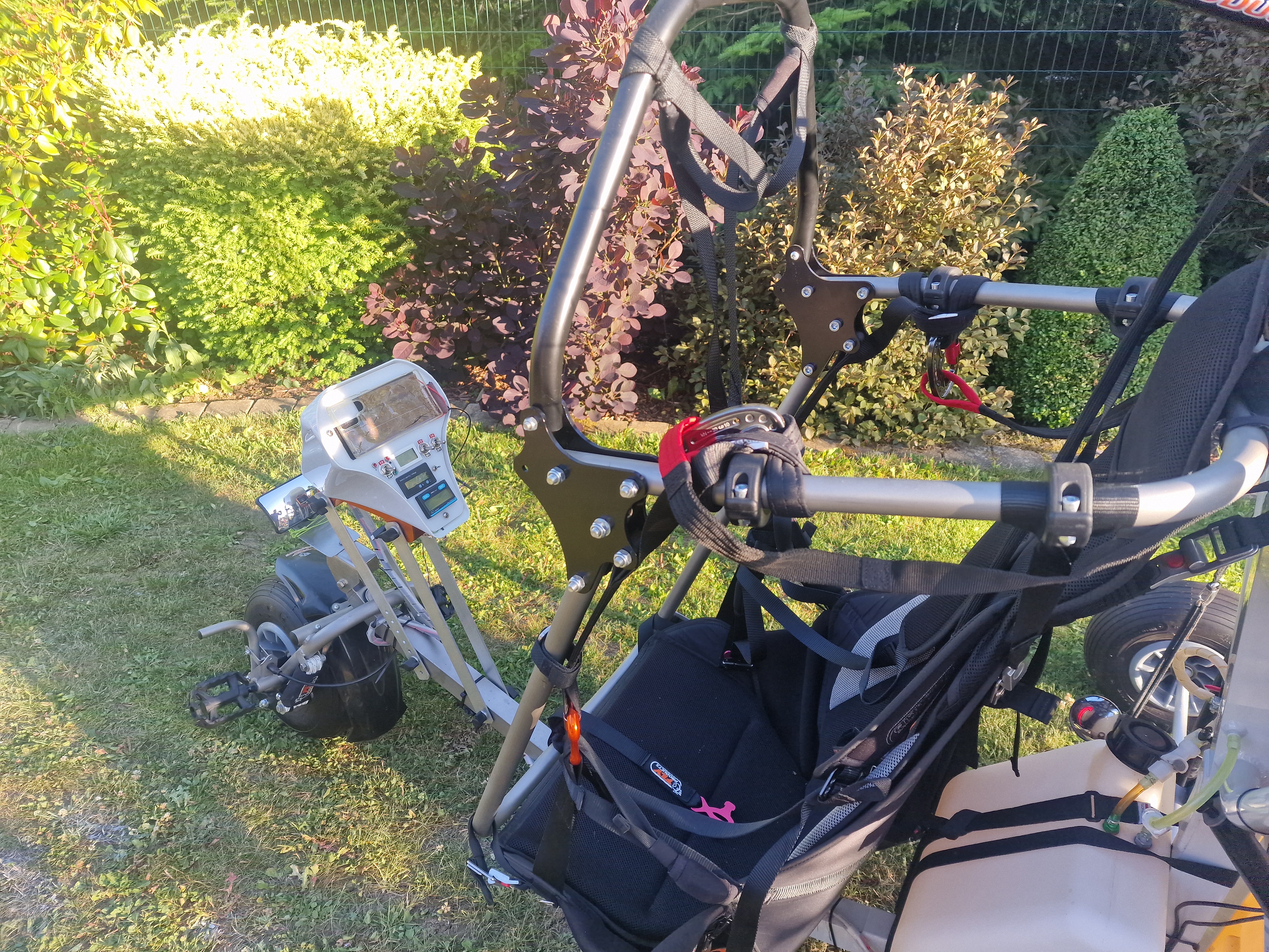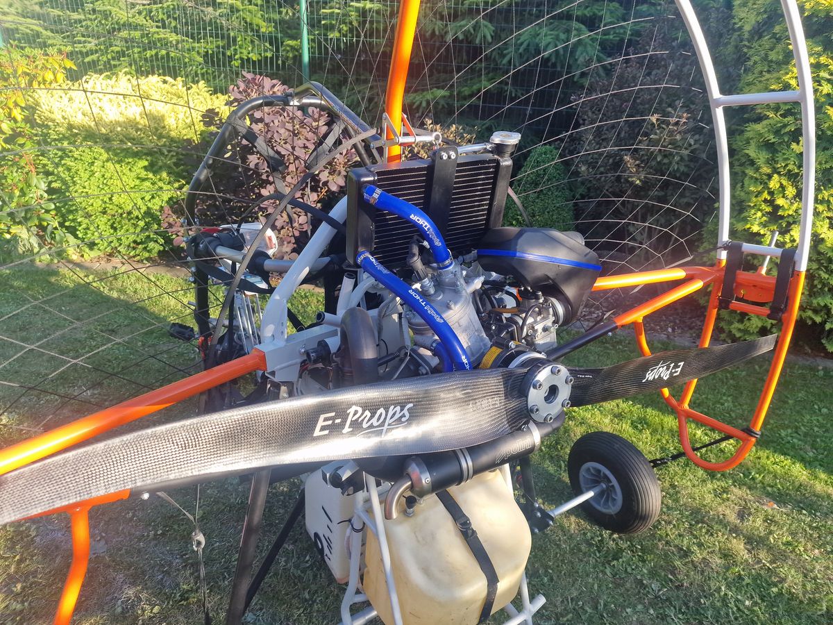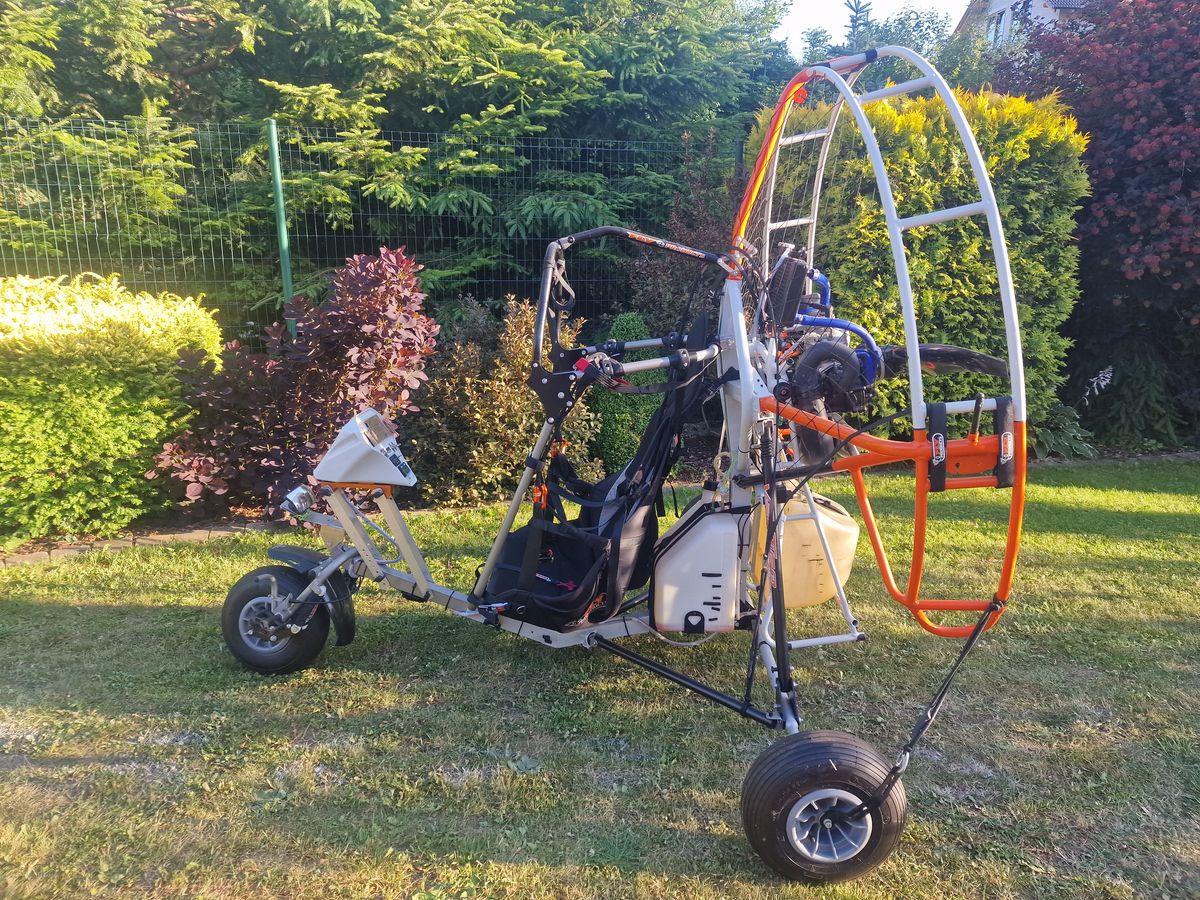 I will sell a FlyProducts Vertigo tricycle with OUTER CAGE 150cm year 2023 in perfect condition. Completed with another additional tank, total approx. 34L, Thor 202 engine (33hp). Delivered together with the FlyProducts Rider backpack. There is only one frame with a motor (shared), the possibility of flying either a krone or a trike. FlyHenry PPD meter. Propeller 3 pcs: E-props 140cm (new) + E-props 140cm (repaired) + 130cm wood. If you are interested, I also have a 130cm E-props trike (€200). The trike is in great condition, with no signs of use. The trike has flown about 40 hours in 2023, since then it has not been flown. If you are interested, I can also deliver a MAC Charger 2 28 Lime in perfect condition approx. 60 hours. (2000€)