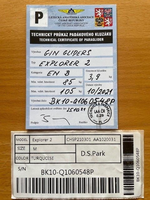 SELL: Wing EN B GIN Explorer 2 M 85-105kg No water With listing bag No TC No SIVs No trees Concertinas