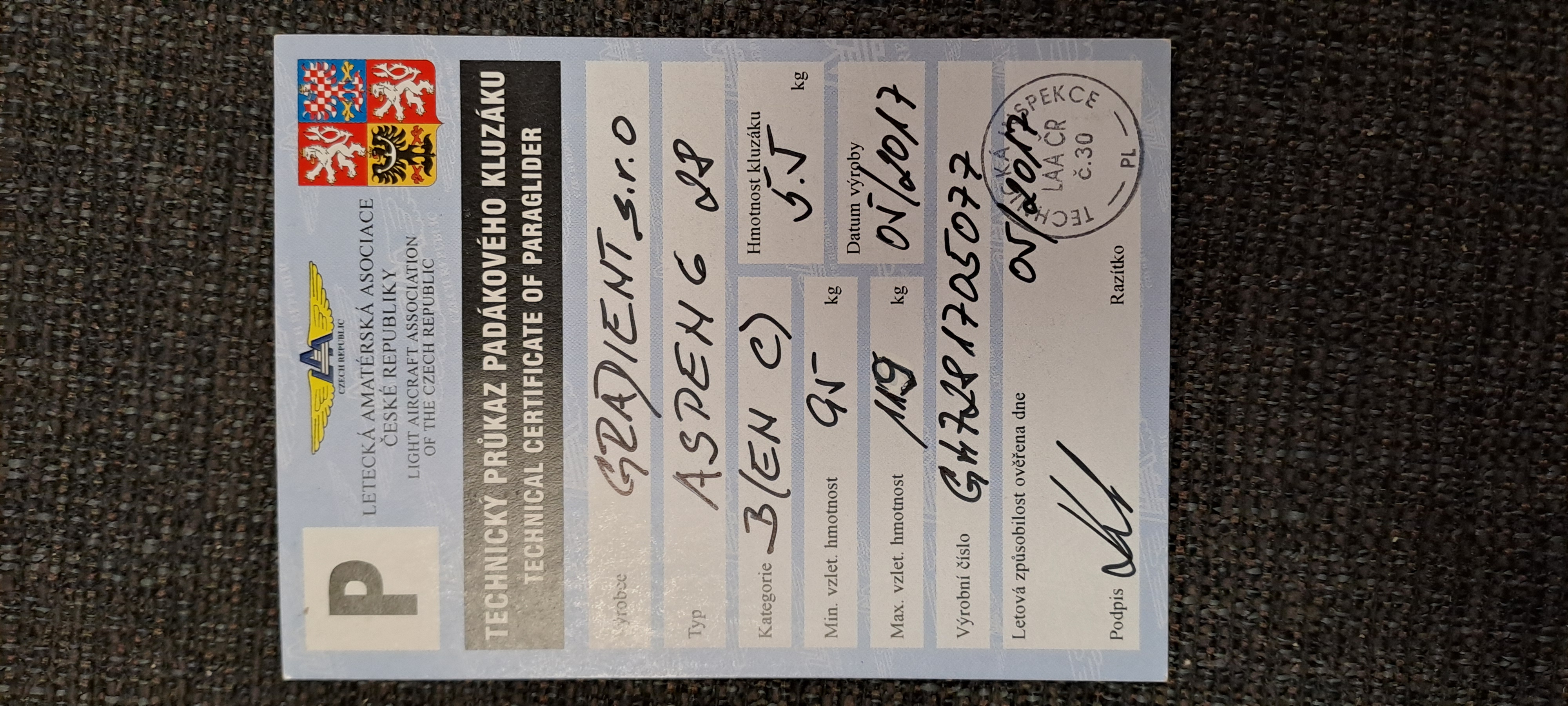 I am selling an Aspen 6 in perfect condition, with a 2-year fresh technical certificate (new wing condition)