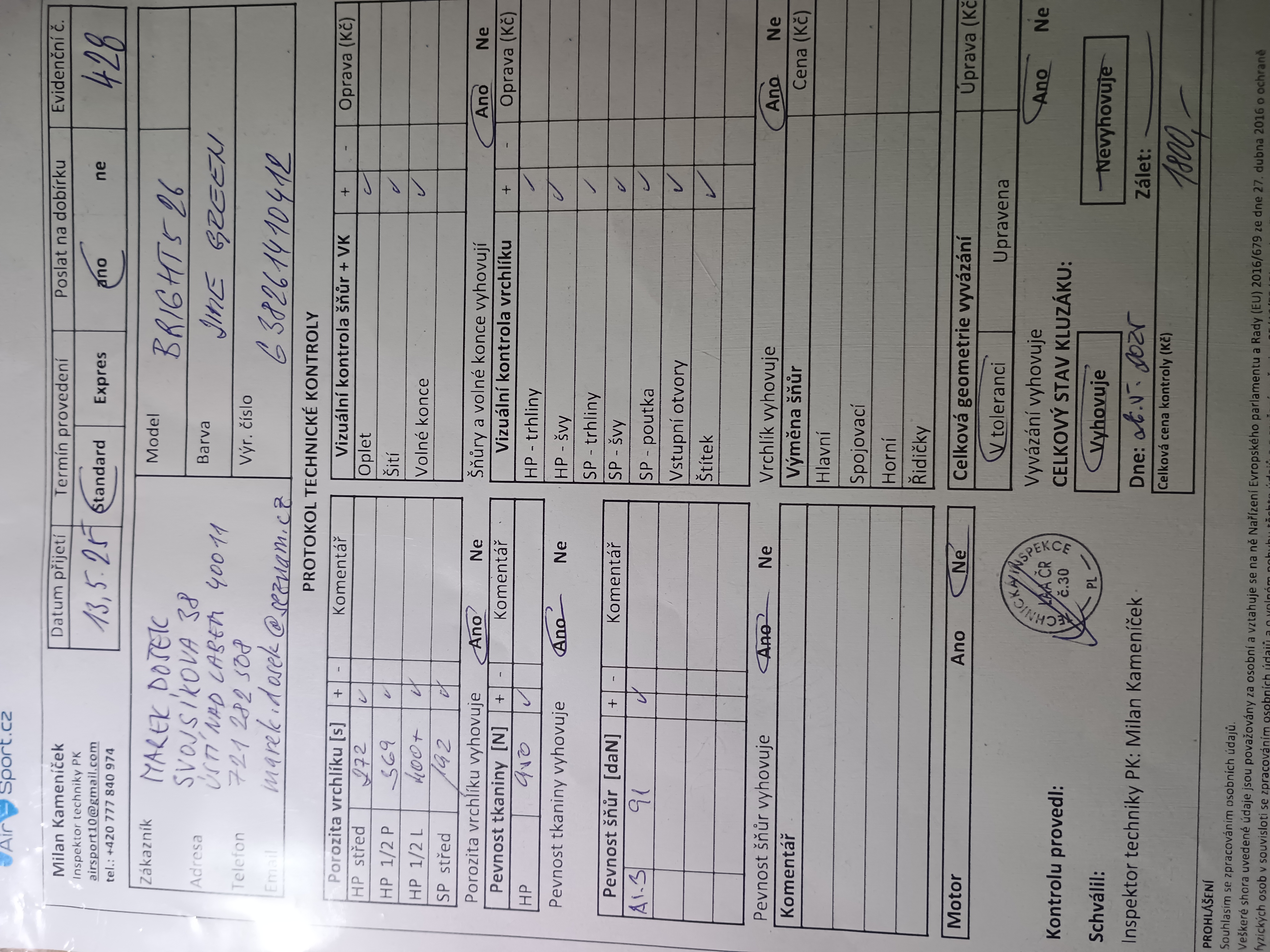 The wing served briefly as a demonstration wing, I flew it for a few hours at the beginning. Since then, the parachute has been in the closet in case my wife starts flying. It doesn't look like it yet, so I'm sending it out into the world.