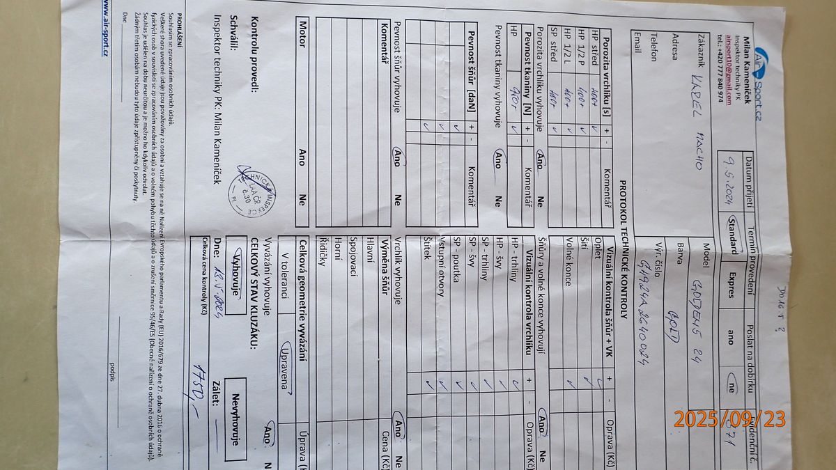 SELL: Wing EN B Gradient Golden 5 24 75-90kg No water With listing bag With bag No trees Concertinas