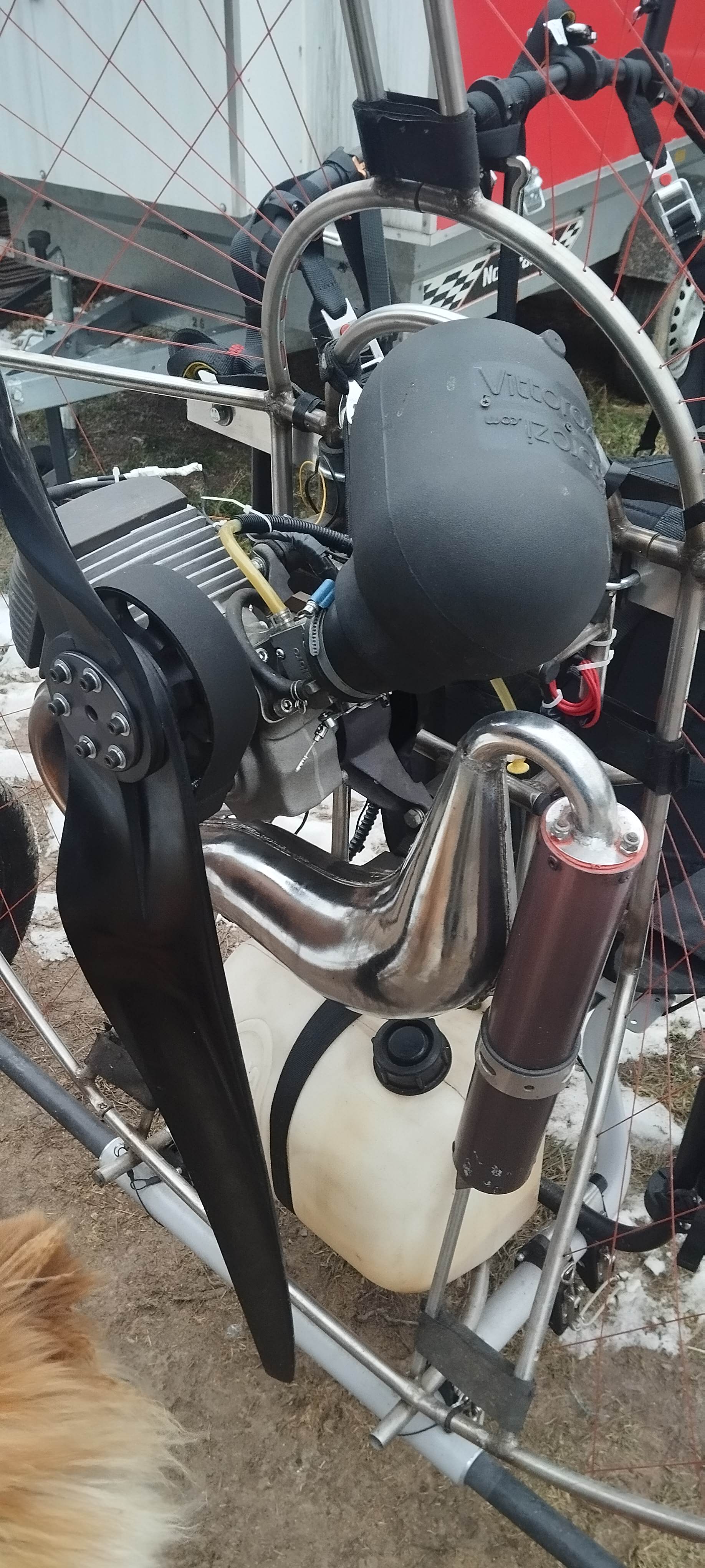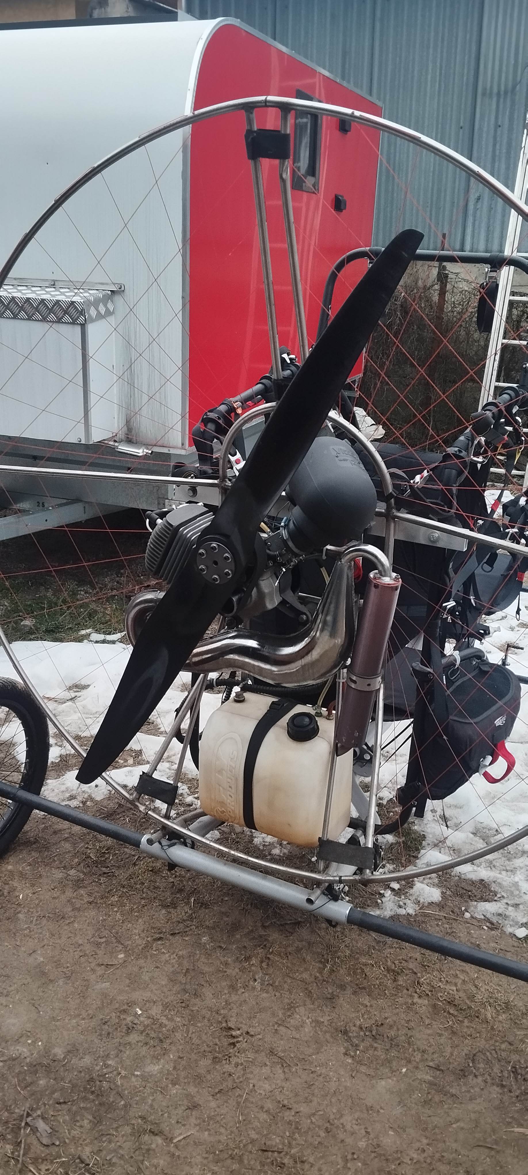 Hello, I will sell a Jenifer Vittorazi Moster 185 titanium bike without a chassis (tricycle).. upper suspension with fixed rams. year 2018.. mileage 100MTH .. engine is at 110% !!! No 100. it is possible to sell only a separate engine with throttle (handle) and propeller for €1500. the best engine on the market, performance ratio and size. super availability with parts from scoutparamotor. availability within three days. I used it for solo flying and currently it is mounted on a tandem tricycle I was driving my children... Not tuned to full revs.. I did the engine myself. new org Walbro diaphragms (€40) no replacement. new silent blocks, completely new gaskets installed. under carburetor, head, cylinder. Decarbonized, precision-cleaned decompression ducts. new starter, new cotton wool in the damper, new neck for the filter box. 125 cm helix propeller. 132 cm scout propeller can be added for an additional fee of €250. the propeller is new.