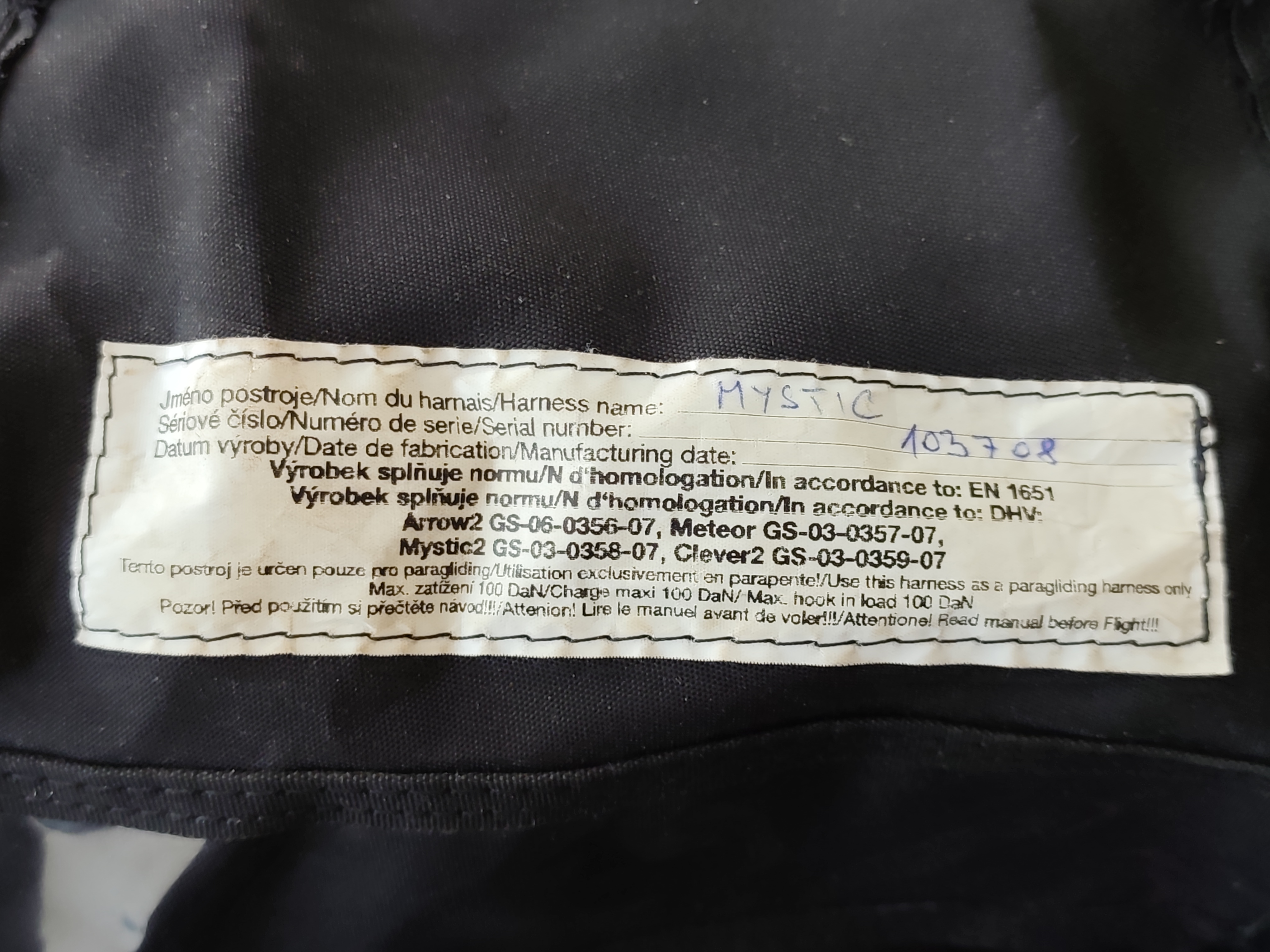 SELL: Harness For Beginners Karpofly Mystic Used Reserve from below Carbines Foam protector Speed