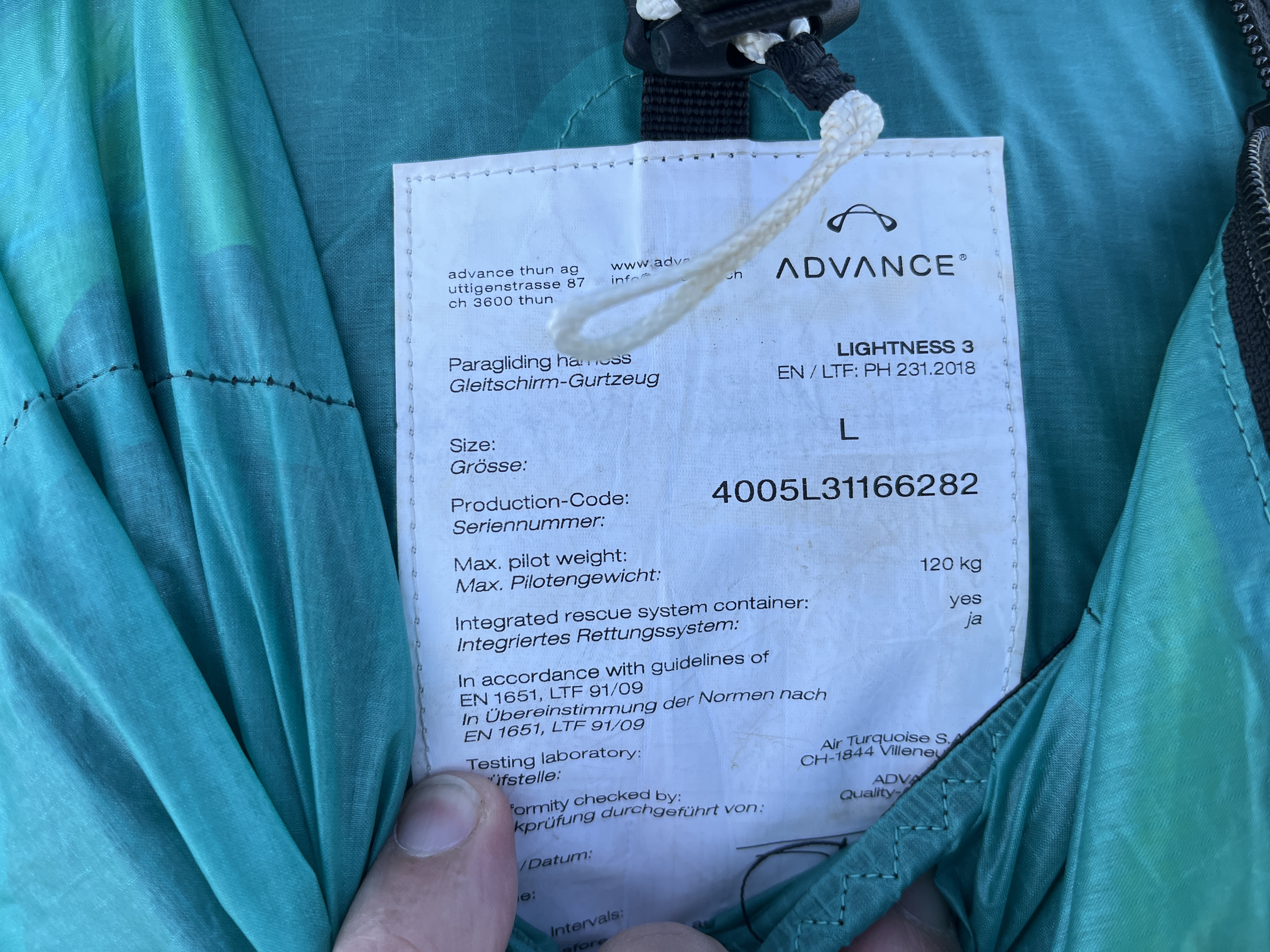 SELL: Harness For Advanced Lightness 3 lightness New Speed Reserve from below Fairing (cocoon) Carbines Lightened