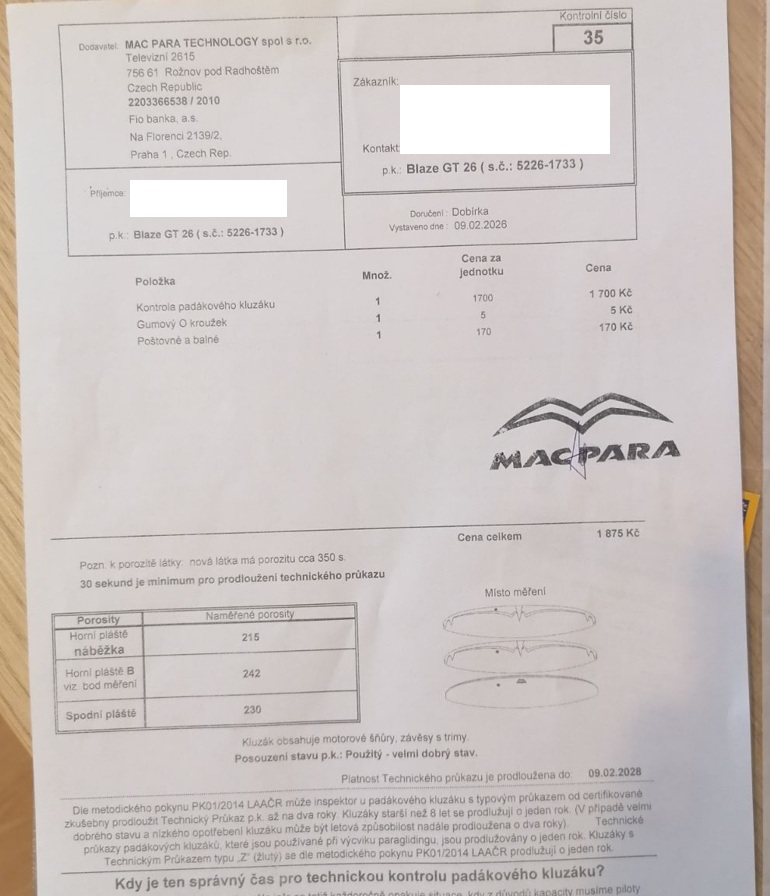 Blaze GT is a safe wing, as is customary with MAC Para. I dare say that even a skilled beginner can handle it and at least it will last him, because it flies against the wind against the Charger. Not flown much, which is reflected in the great condition - now after TK - see the protocol all porosities safely above 200s. Stored only at home in a cauliflower tree - part of the sale.