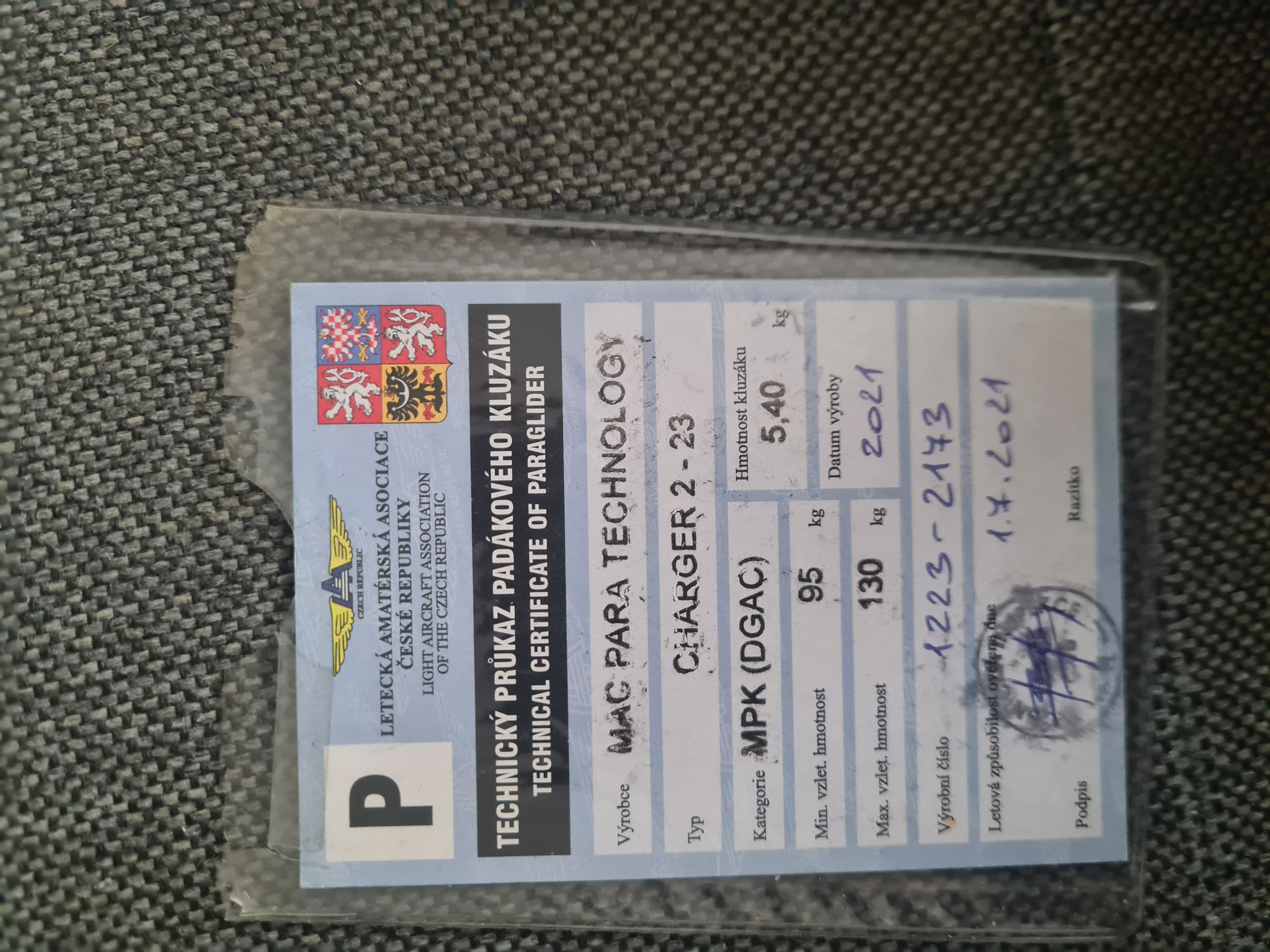 I'm selling a Mac Charger wing, size 23, model year 2021. 2 hours of flight time from TK.