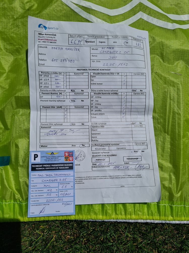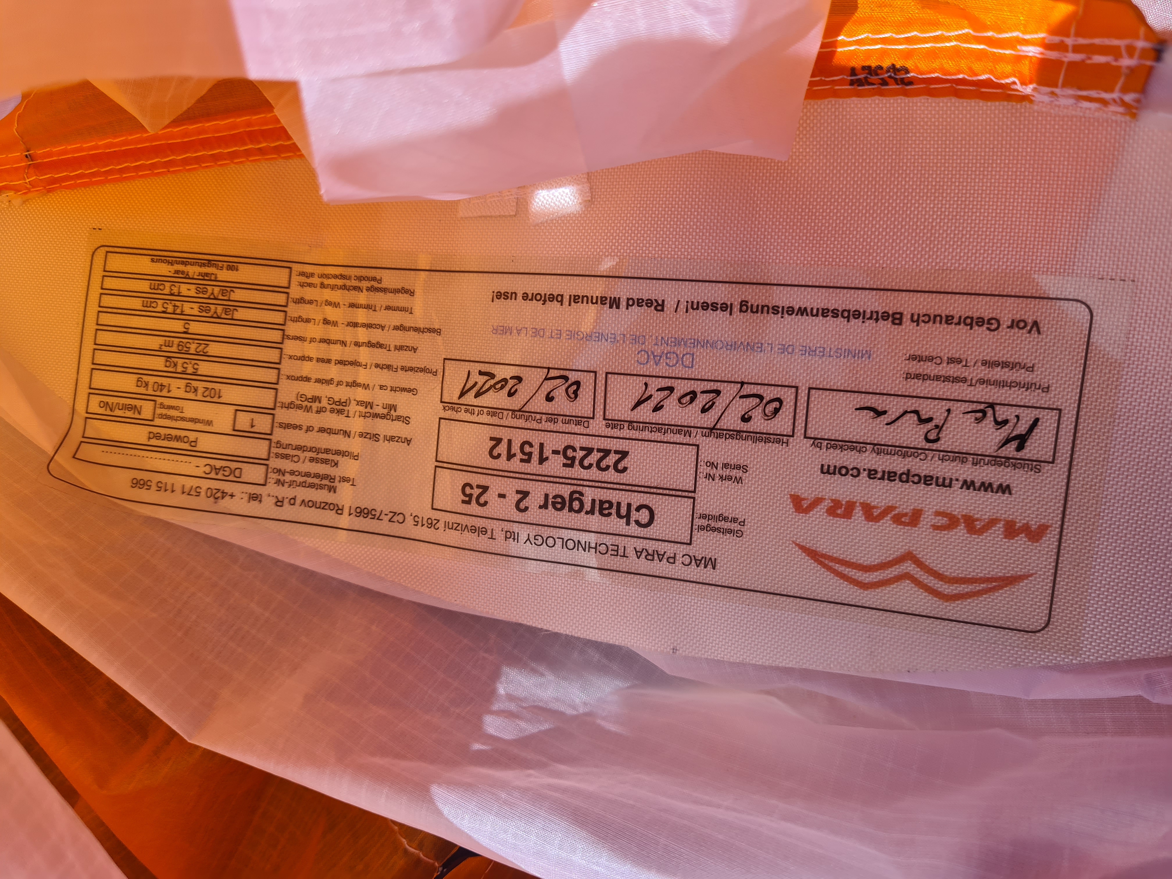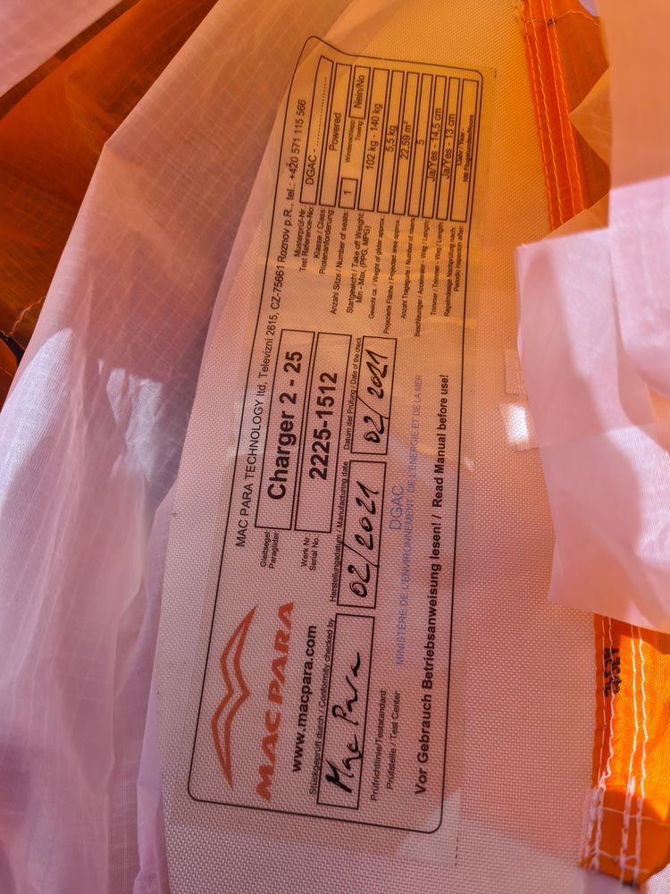 I'm selling a MacPara Charger 2 wing, flight test within 3 pm, new technical inspection (6.6.25) not flown since then.. Switching to another wing.. New wing condition.