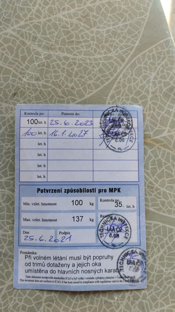Flying weight: 100 - 135kg