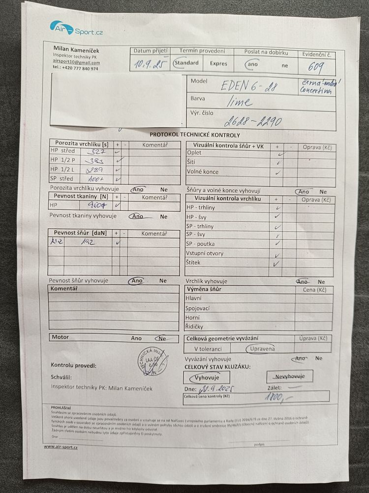 I am selling a beautiful condition MAC PARA EDEN 6 -28 (90-112 kg) year: 9.1.2020 Run 70h. After fresh Technical. Including press packaging. The sale includes a manual, TK protocol, Technical certificate. After agreement, it can be purchased including a seat and backpack.