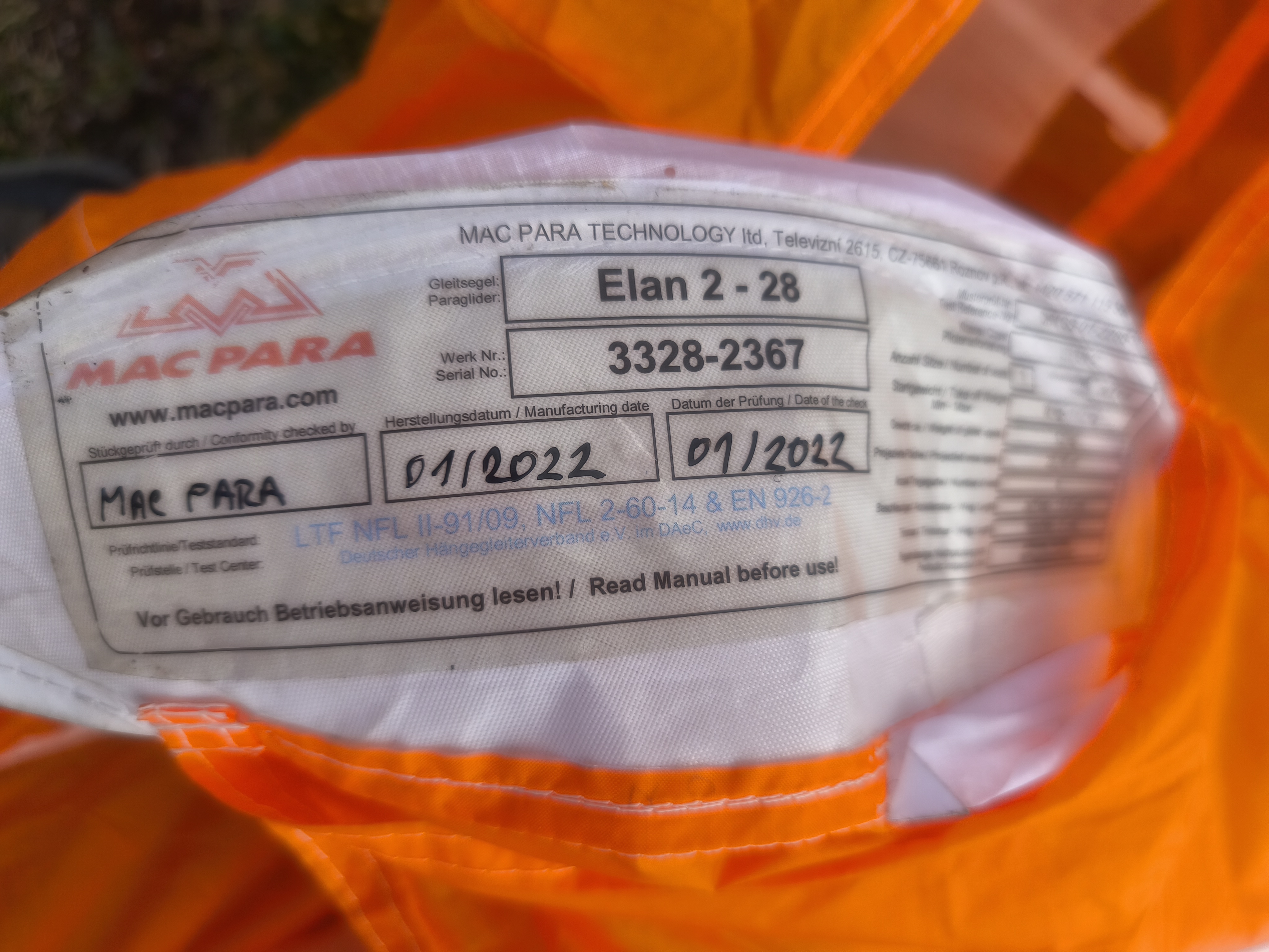 SELL: Wing EN C MAC Elan 2 28 92-112kg No SIVs No trees Powered ready TC valid