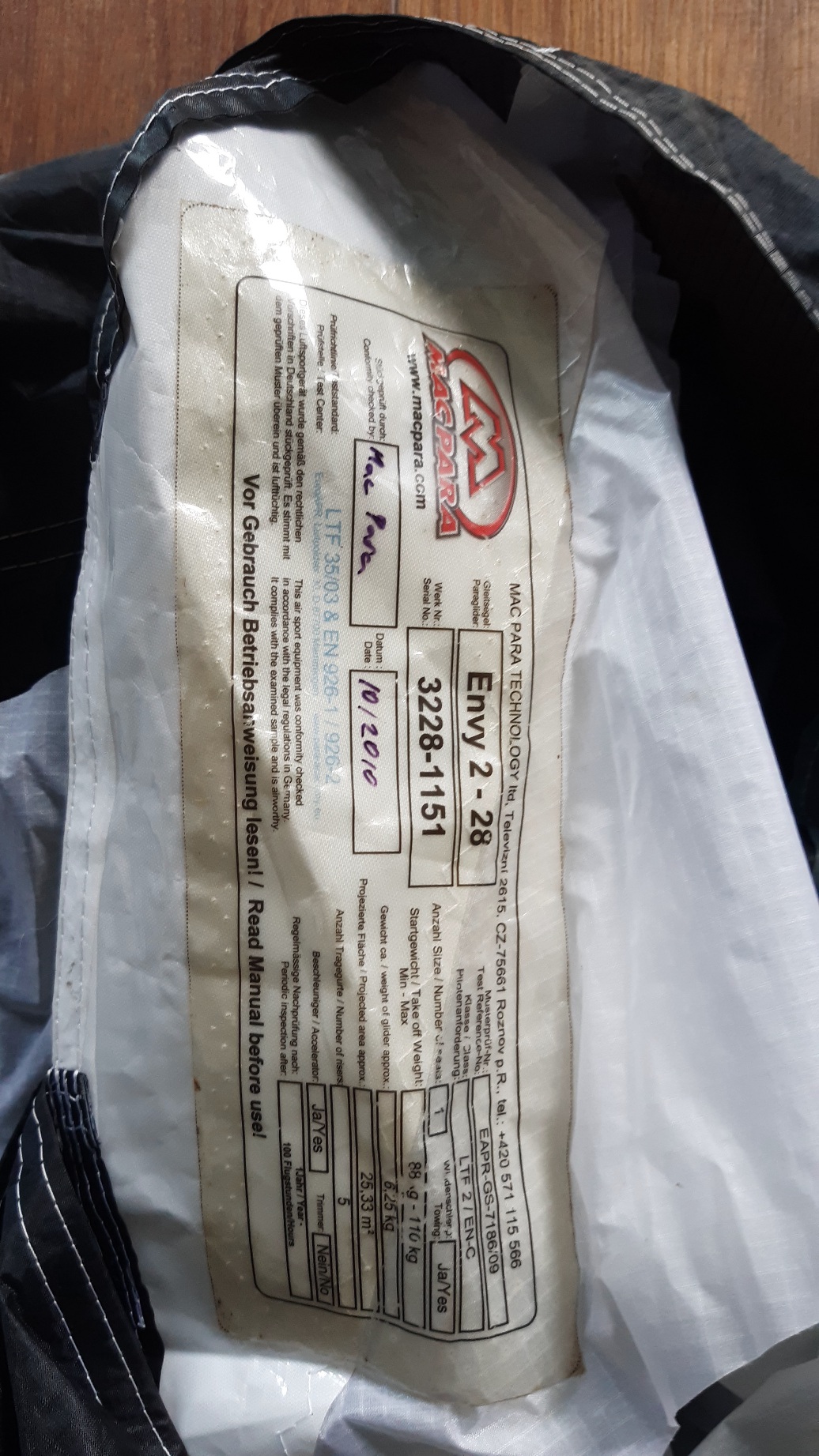 The parachute is very well preserved. The last time the porosity was measured was 200. Since then, it has been lying in the closet for several years.