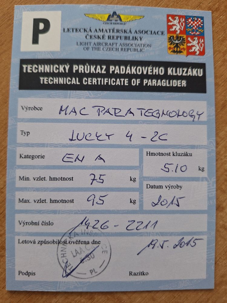 I am selling a Mac Para Lucky 4 26, hybrid, flown only on engine with minimal flight, features a new canopy. Certificate of Authenticity valid until 12/2025.