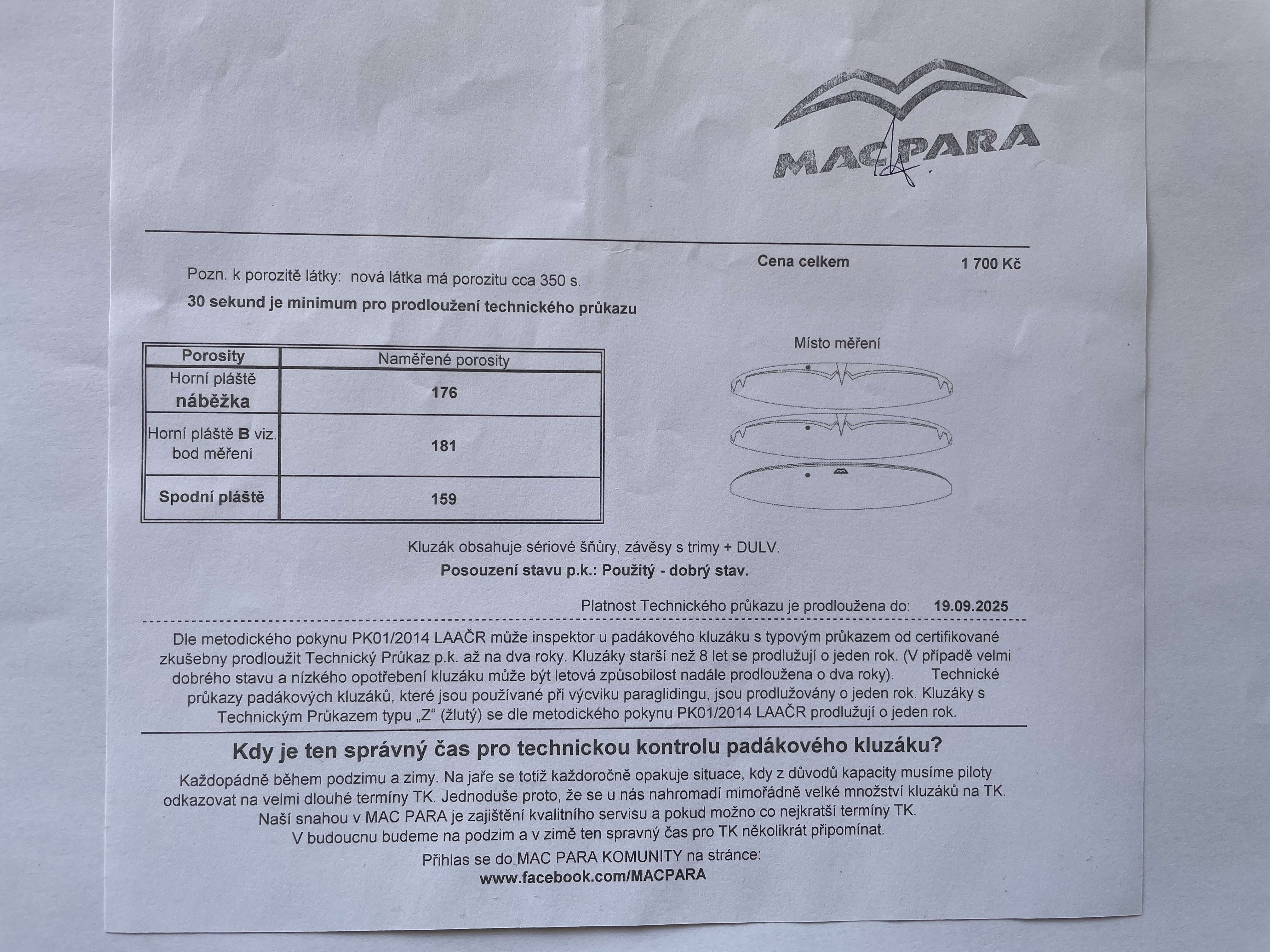| Min. sinking [m/s] | 1.05 | 1.05 | 1.05 | 1.05 | 1.05 | 1.05 |