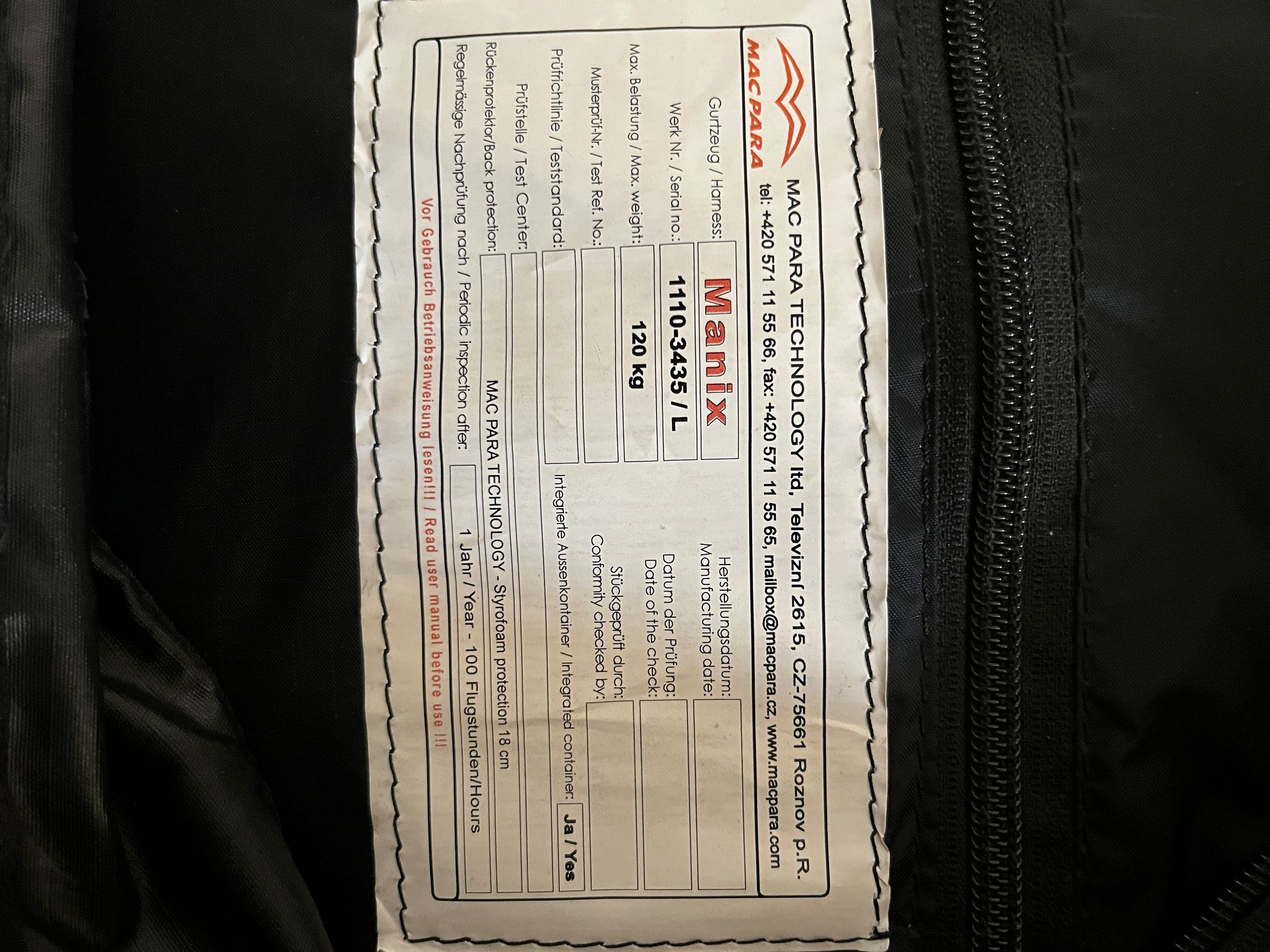 SELL: Harness For Beginners Mac Manix L Used Carbines Reserve from below Foam protector With bag Speed Snap buckles (Part of a Set)