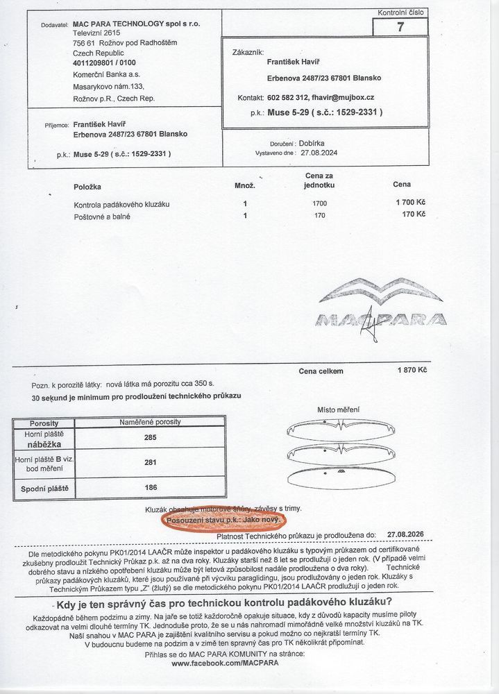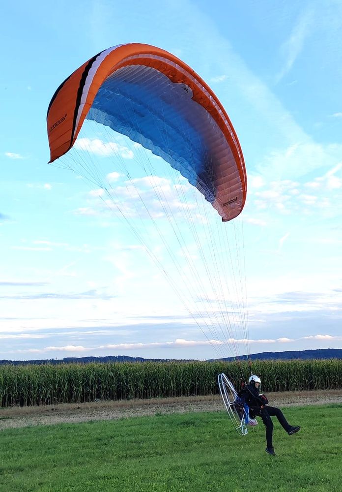 MAC Mouse "5" hybrid glider size 29 (free and motor) ideal for beginners (very safe), take-off weight: 116 - 147kg, year of manufacture 2022. By pulling in or releasing the trims you have either a free or motor glider! Not bathed, not branched, no SIV, not flown on sand, valid technical inspection. Extraordinary glide = low fuel consumption. In excellent condition, after the 1st technical inspection with the result on the protocol "like new"! Safe and brand new parachute for half the price of a new one! https://www.macpara.com/cs/paragliders/paramotor-gliders/muse-5-hybrid/