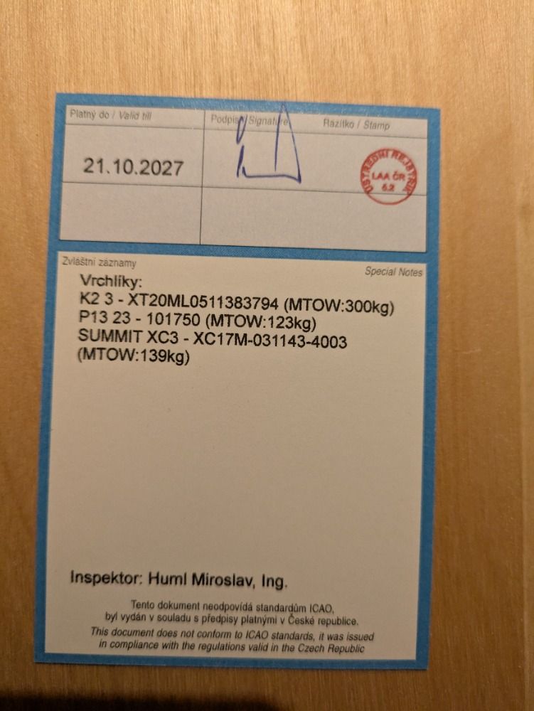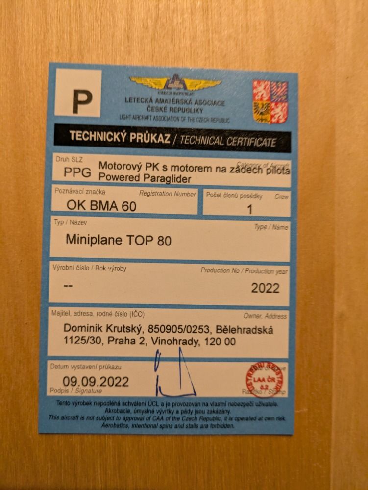 TK valid until 10/27. Selling due to need for a more powerful engine (I want to fly tandems with a backpack). By agreement I can demonstrate in the vicinity of Prague or northern Bohemia. Given that my flying season ended prematurely due to illness, a discount is available for quick negotiations.