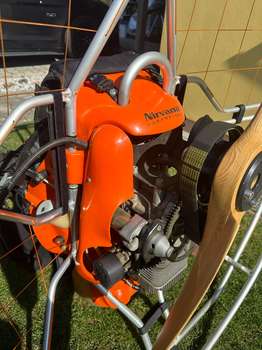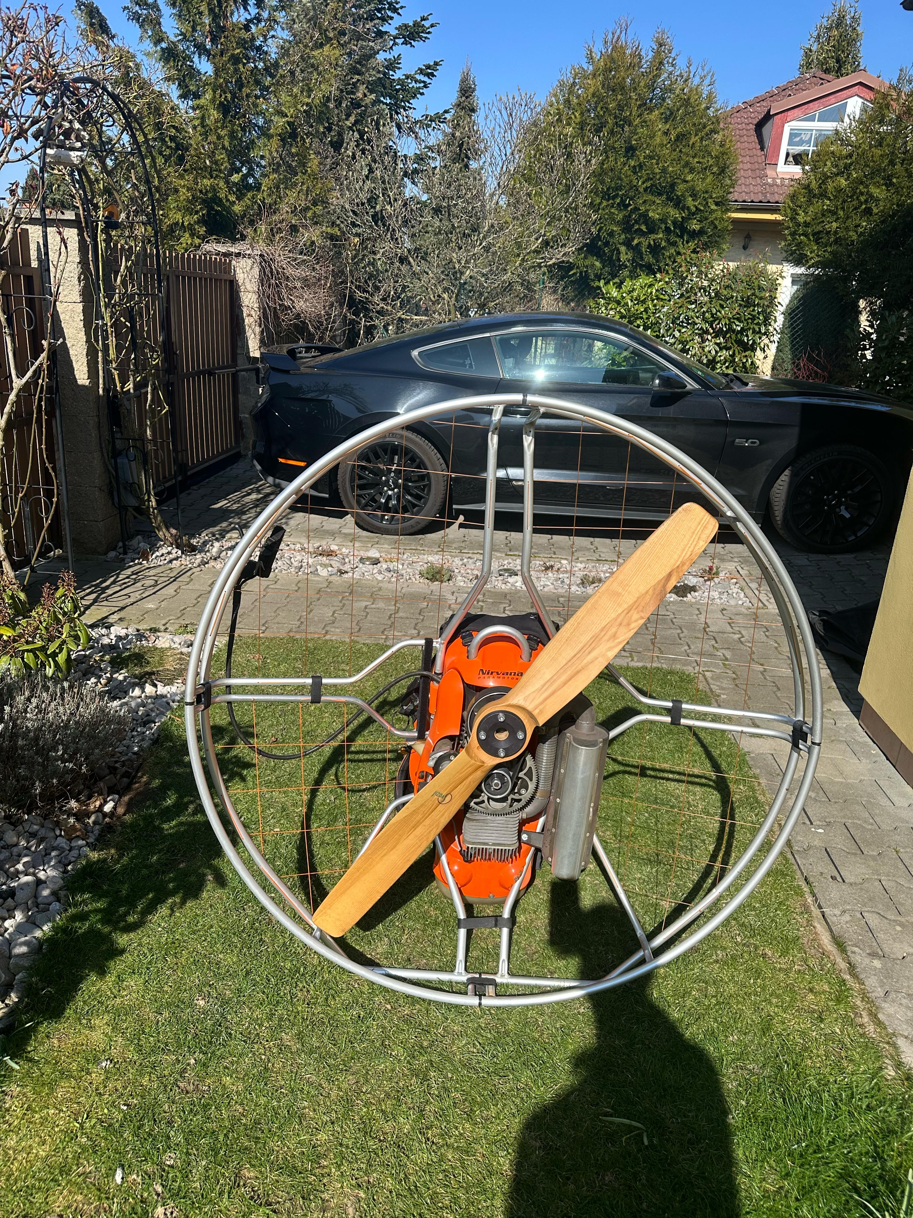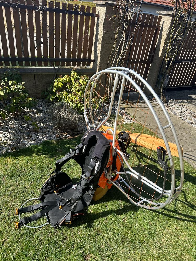 I am selling the complete set ready to fly, only technical work needs to be done. Engine after service. Flight time is around 200h. Suitable for pilots up to 85kg. I originally flew a spin 180, but it was quite heavy for me, so I exchanged it for this older, but much lighter and more comfortable backpack. Selling due to lack of use. Backpack: Nirvana Electric 115, model year 2003, after service, starts on the first tap. Electric and manual starter. Minor defects on the fiberglass, engine is absolutely fine. New battery. The seat is in 100% condition, but it is from 2013, so a new one will need to be purchased for TK. Wing: MAC Para Trend 3, size 26, model year 2008. Including trims. Excellent condition, last measured values were as follows - bottom: 190, top: 160. Max speed is around 38km/h, so it is great for easy starts and slow flying. Accessories: Reserve parachute, Helmet with Peltor earplugs (ready for Bluetooth unit), Transport bags, spare loose ends, candle.