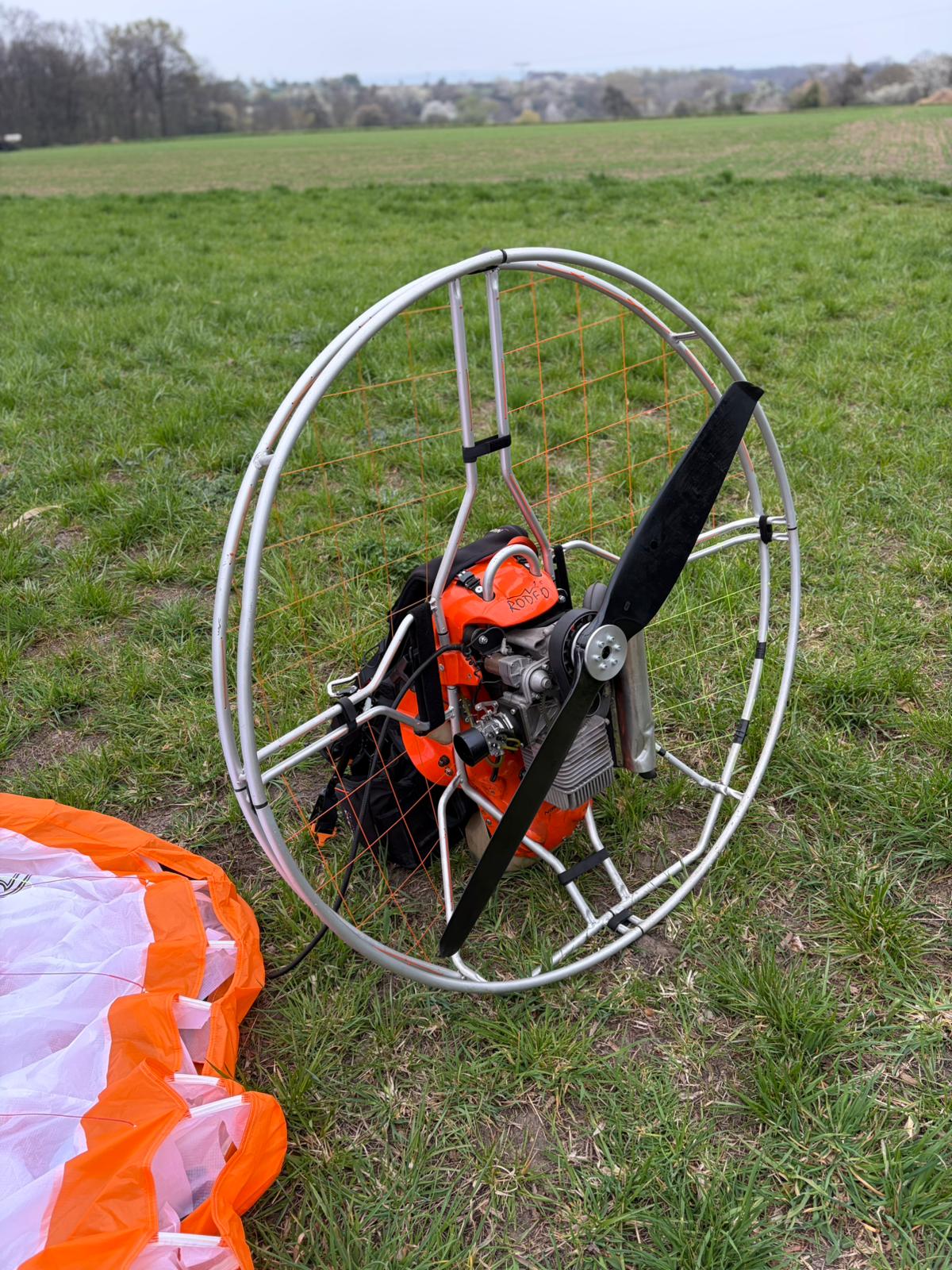 Features: Gas in left hand, Battery charging, Transport packaging, TC valid, Upper suspension, 2 blade propeller, Battery, Electric starter, Spare frame