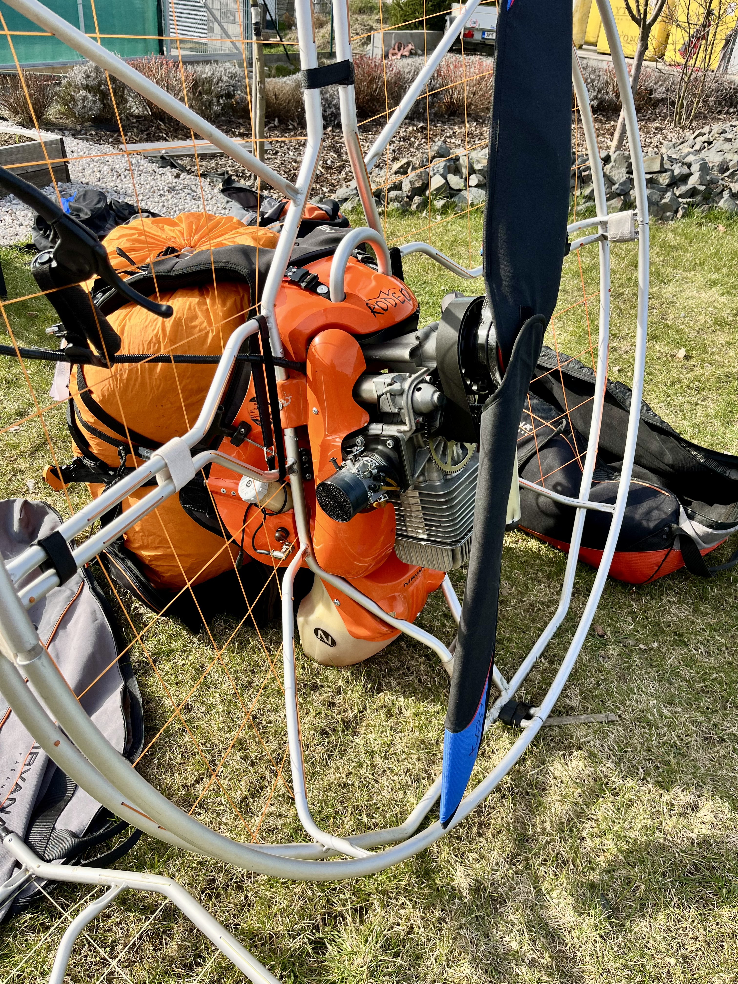 Features: Spare frame, Gas in left hand, Transport packaging, TC valid, With speed, 2 blade propeller, Spare propeller, Electric starter, Composite propeller