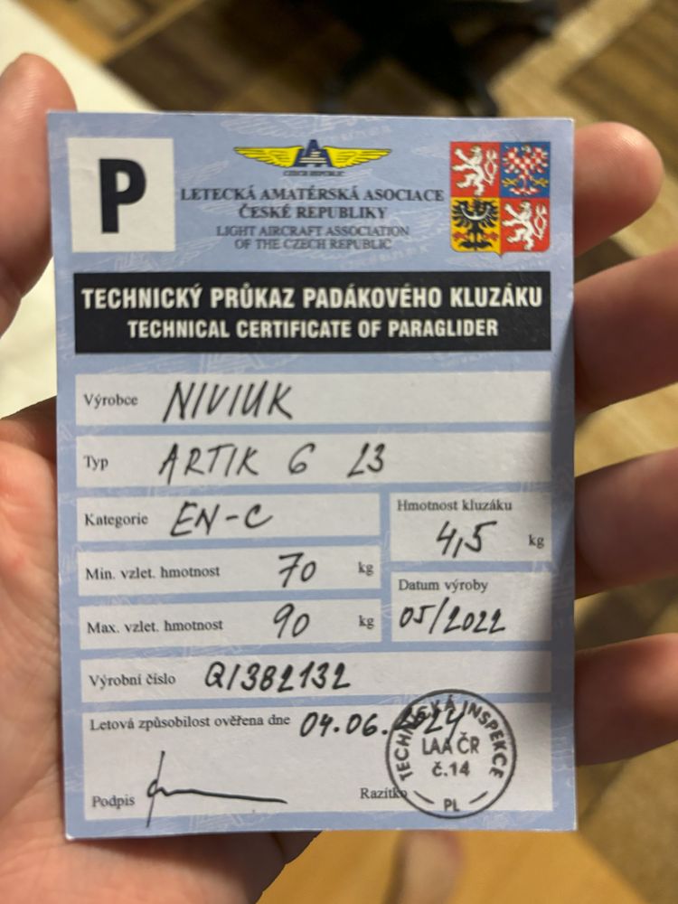 SELL: Wing EN C Niviuk Artik 6 23 70-90kg No water Concertinas With listing bag No flying on the sand TC valid