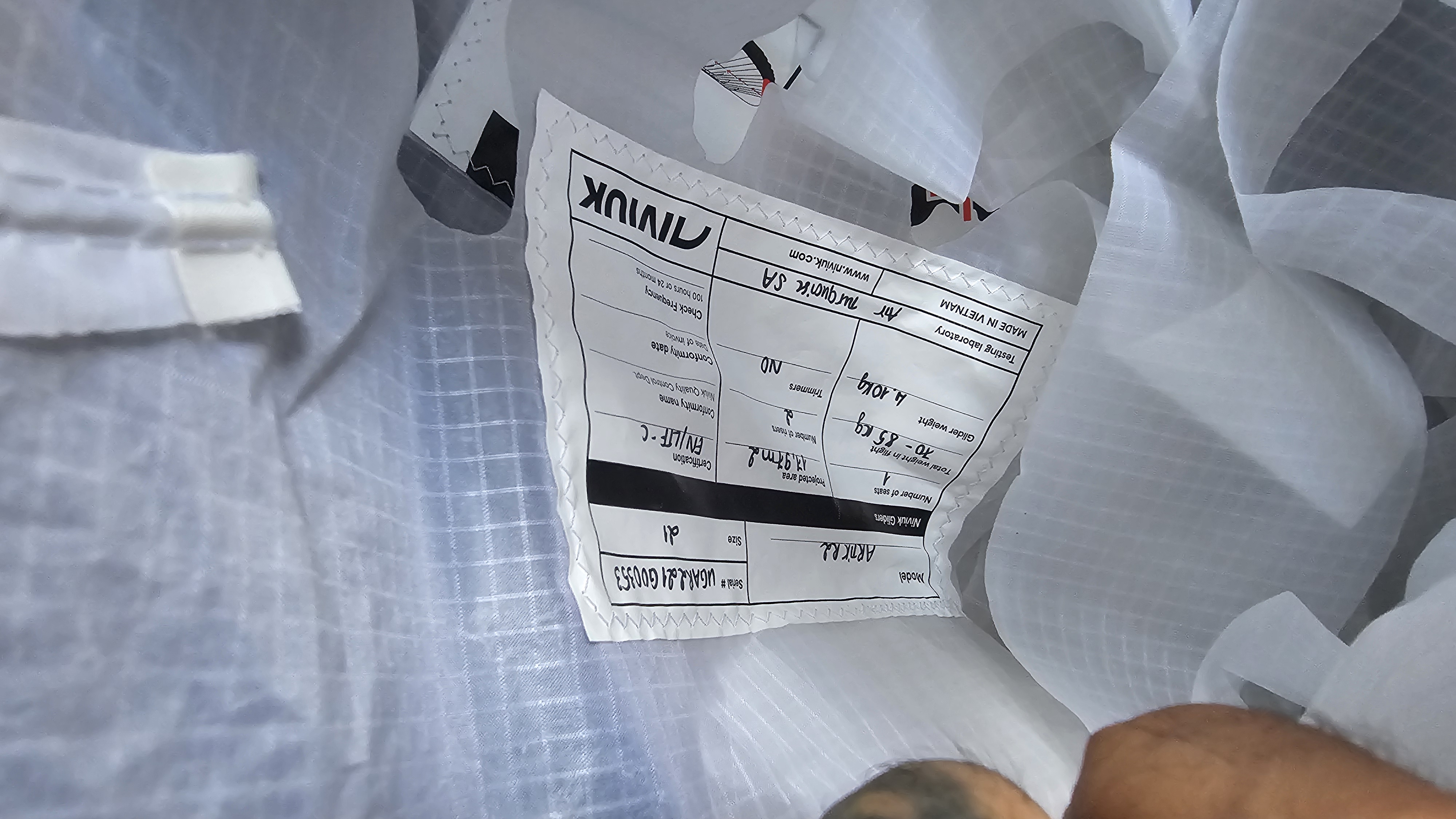 New Niviuk Artik R2 for sale, 2-liner, size 70-85kg, color Glacier, size 21, no damage. It has only 20 hours of flight time. I won't be flying this year for health reasons, so I'll pass on the offer to someone who will use it.
