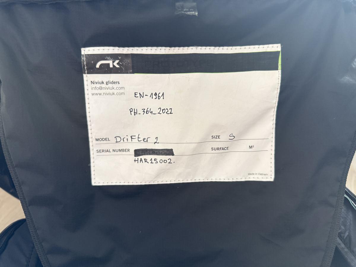 SELL: Harness For Advanced Niviuk Drifter 2 S Used Reserve from below Carbines Fairing (cocoon) Integrated counter Speed