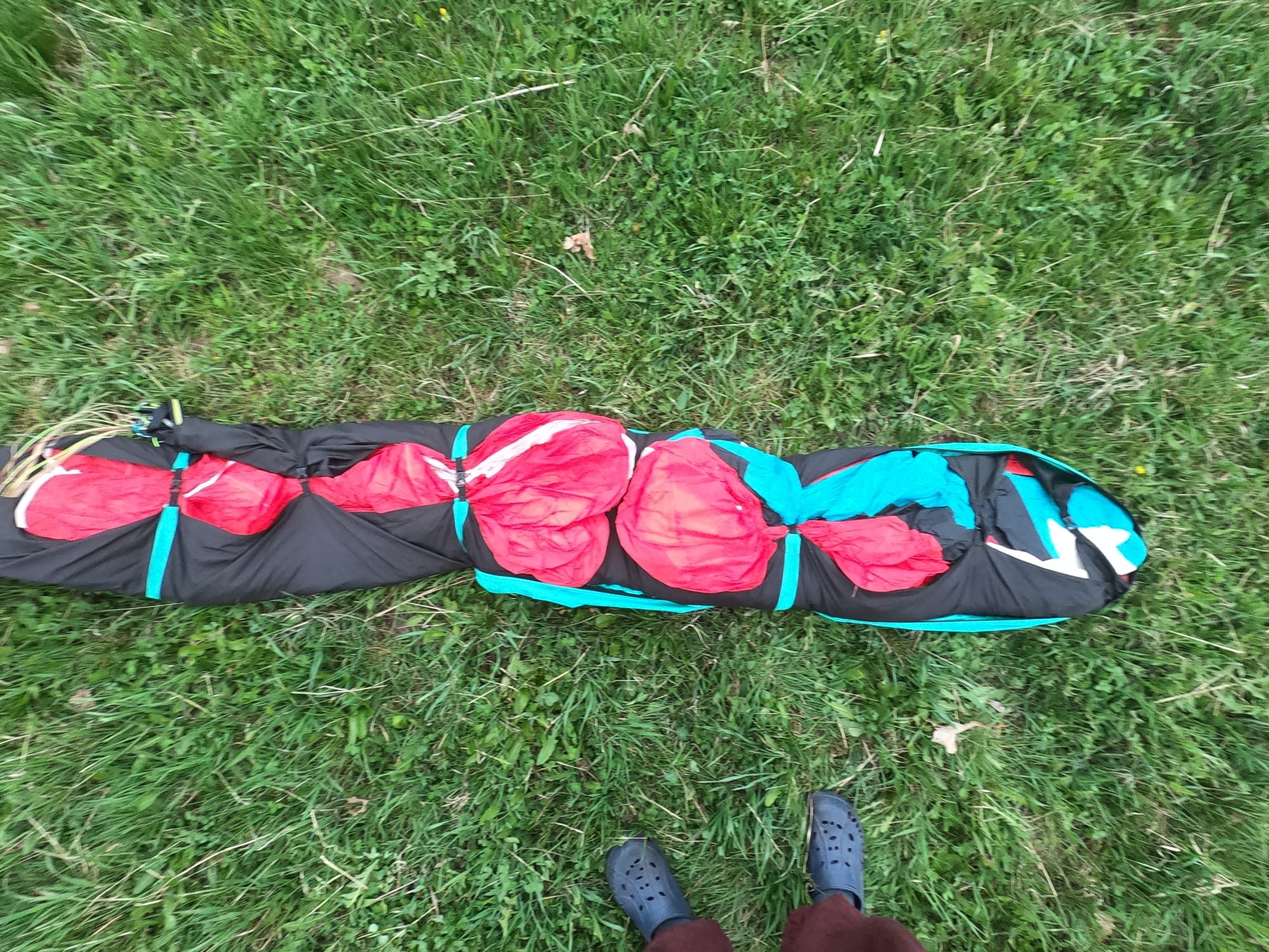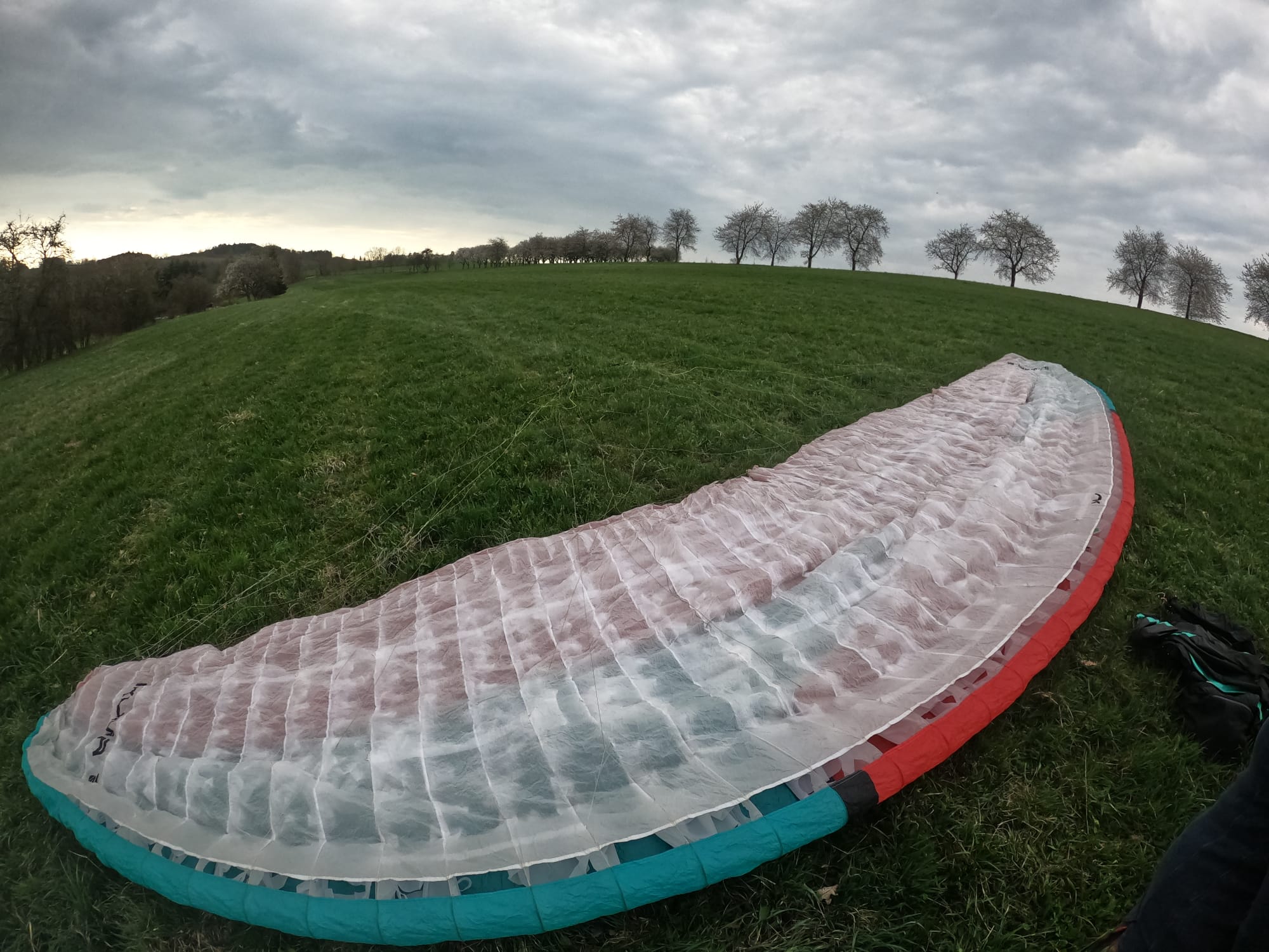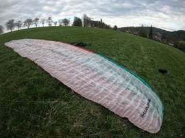 Almost unflown for the last two years, only 3 hours since the last TK. The nithinol reinforcement on one rib has worn out in the past, the sliding eyes on the risers have been replaced with better quality ceramic ones. Otherwise, no major repairs.
