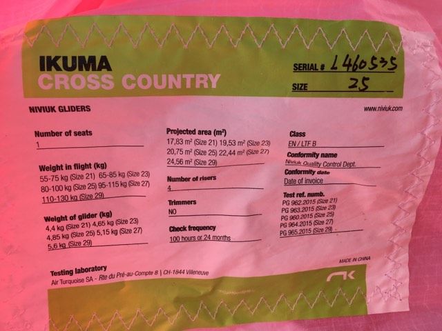 SELL: Wing EN B Niviuk Ikuma Niviuk Ikuma 25 80-100kg Small repairs No flying on the sand No trees No water