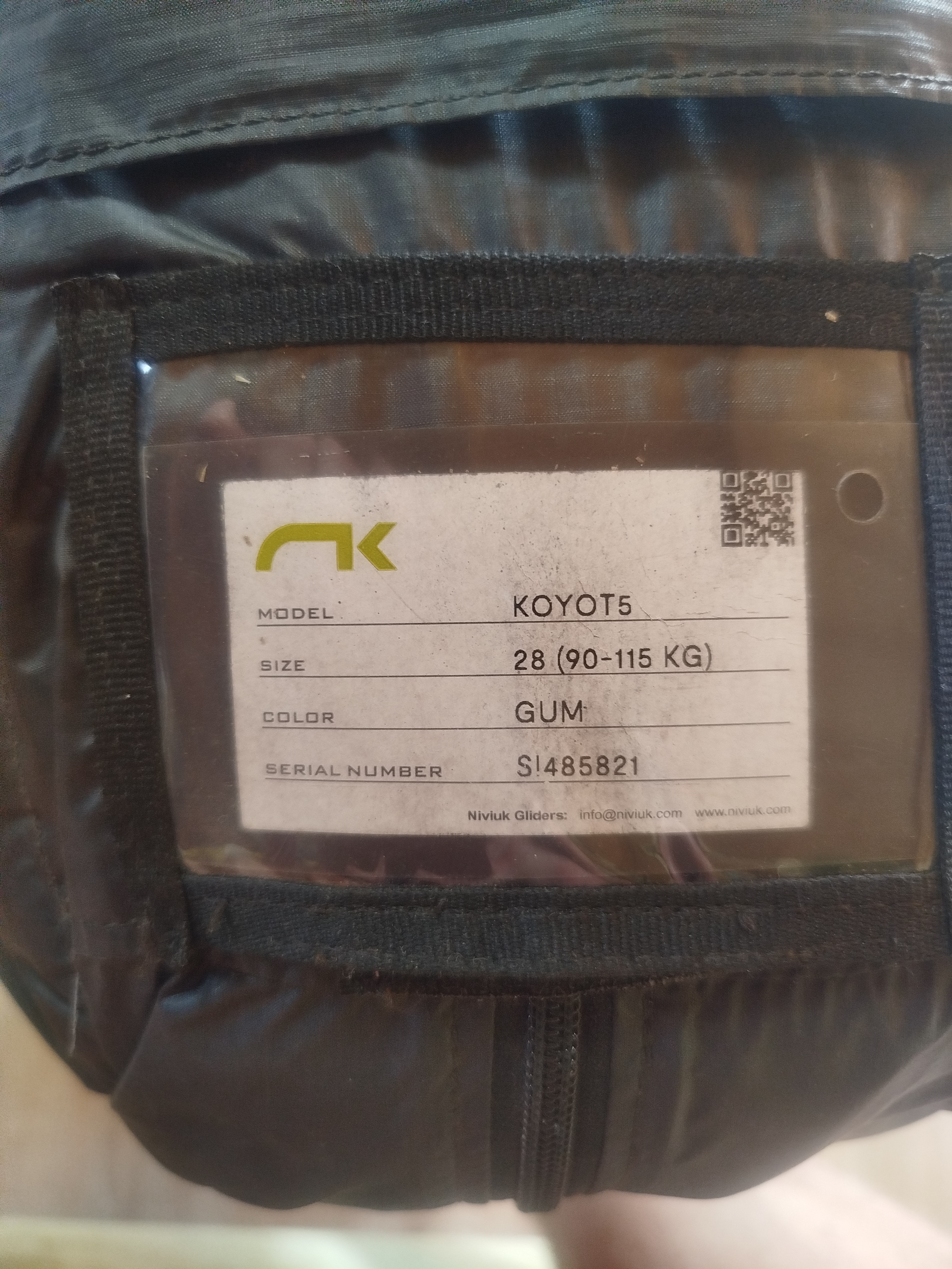 SELL: Wing EN A Niviuk Koyot 5 90-115kg No trees Concertinas No water No SIVs With listing bag TC valid TC fres
