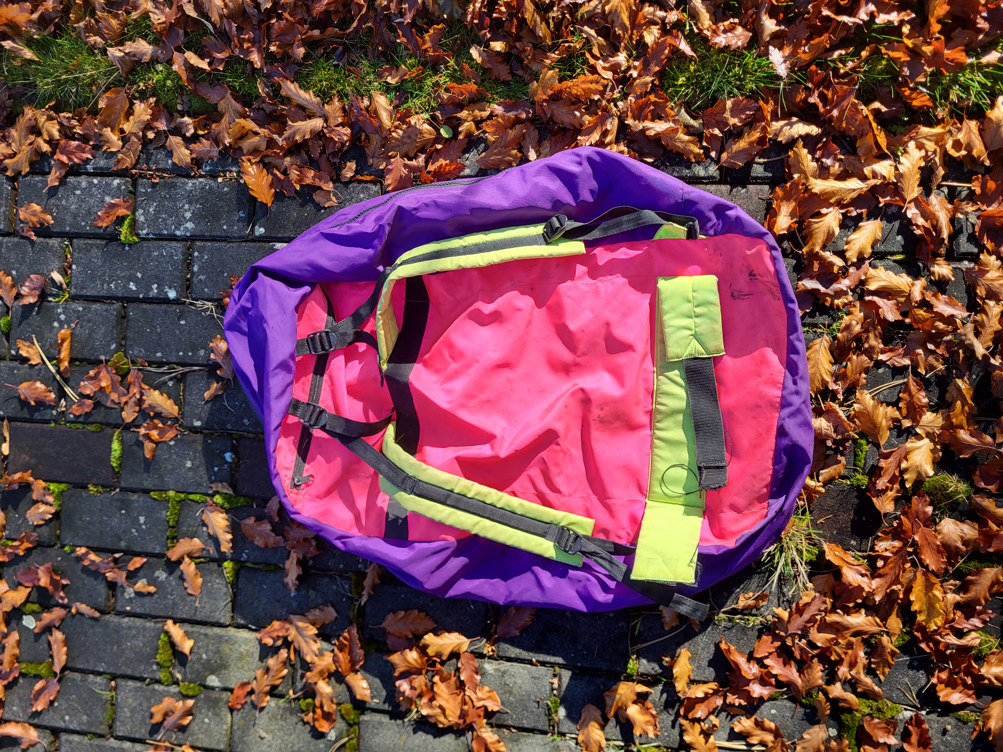 I'm selling an old backpack with a capacity of about 90 liters. Quite dirty on the outside, fine on the inside. Apart from the broken hip belt, fully functional, so it's good for storing equipment or for display as a retro piece - I wouldn't take it for a hike up a hill. Maybe it will still be useful to someone. I'm also selling an old tandem backpack and other unused stuff, including a vario - check out my other ads.
