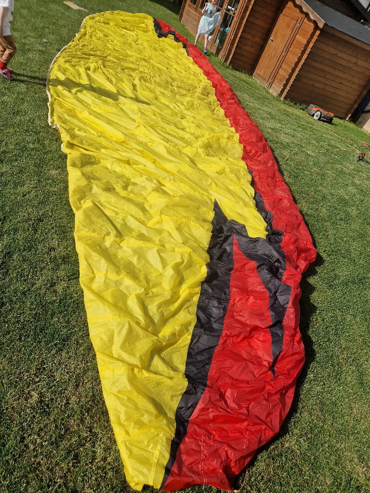 I am selling a Nova Prion 23 parachute including the case, I used it a few times as a boom and for my first flights. It is in good condition overall. The TK is not valid. I am selling it including a seat size S and a brand new Gradient backpack. Ideal for training at the beginning.
