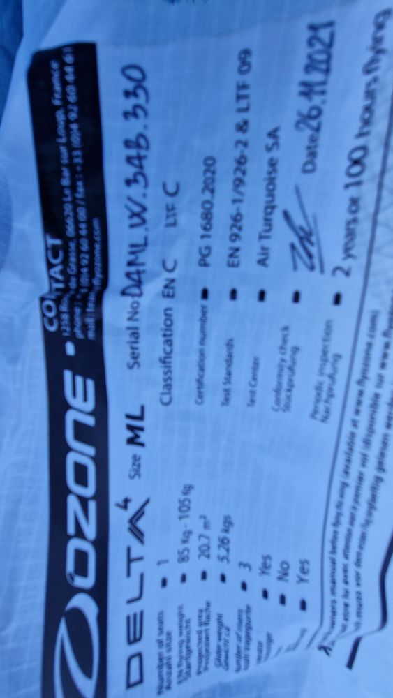 SELL: Wing EN C Ozone Delta 4 85-105kg Concertinas No water No trees No flying on the sand TC fresh No SIVs