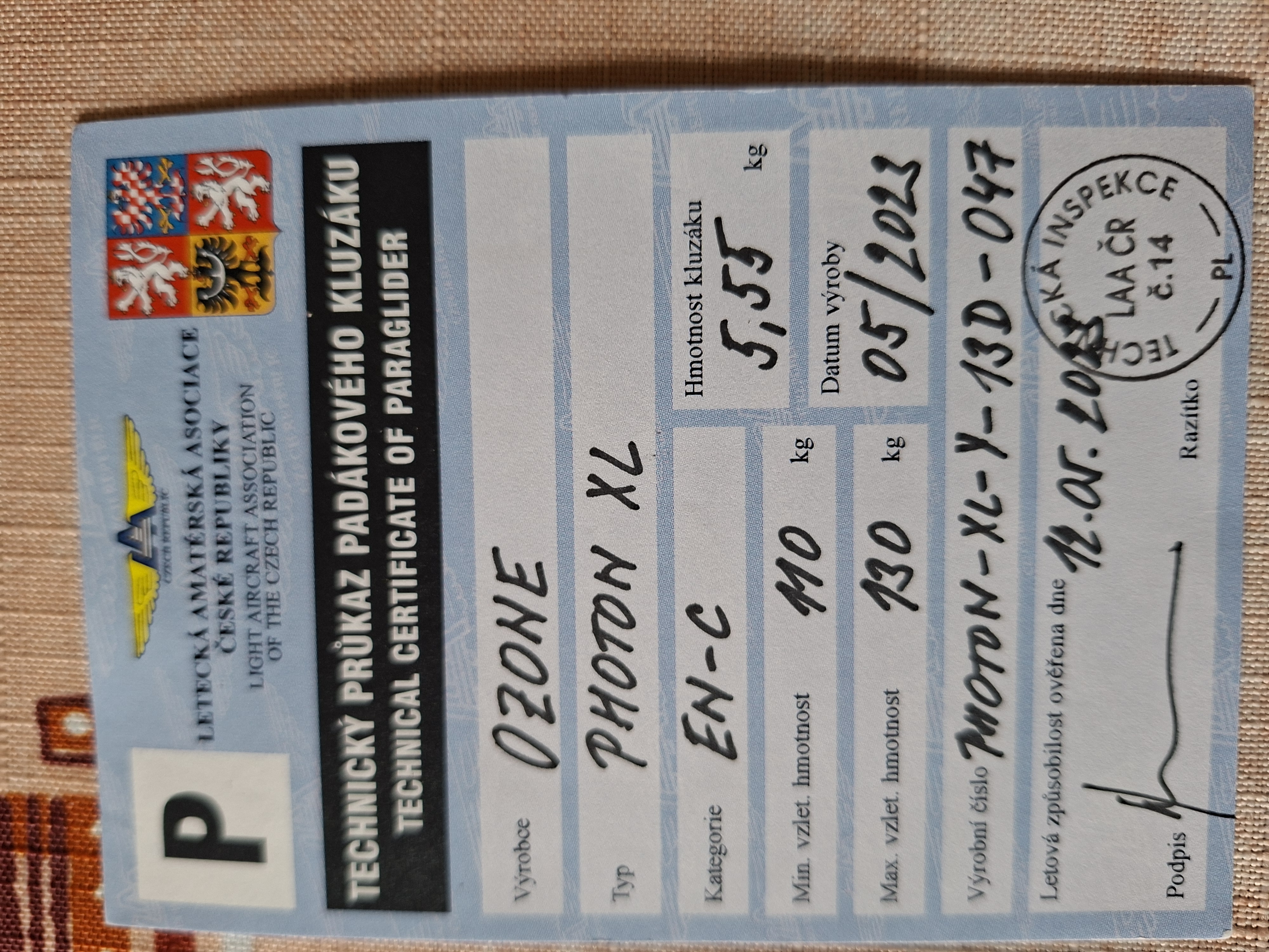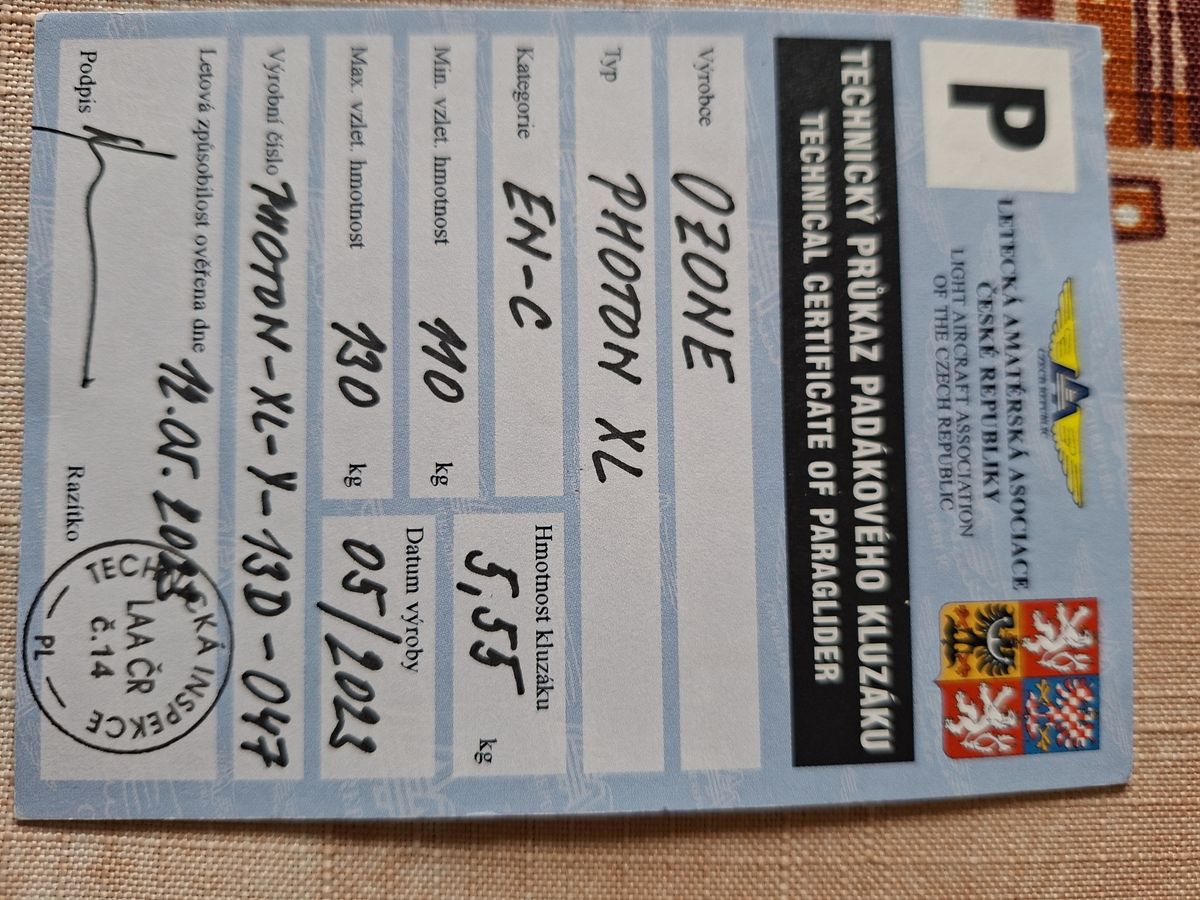 SELL: Wing EN C Ozone Photon XL 110-130kg No water Small repairs With listing bag No flying on the sand TC fres